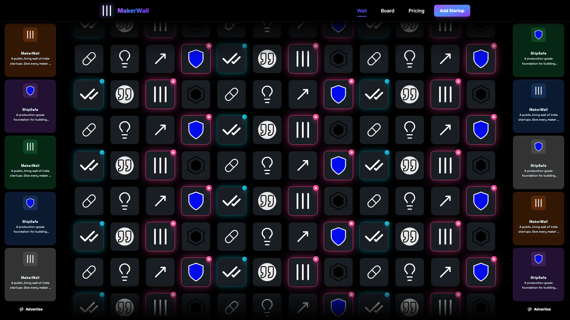 Makerwall là một nền tảng công cộng được thiết kế như một bức tường sống của các startup độc lập. Nó phục vụ như một không gian kỹ thuật số nơi mỗi nhà sáng tạo có thể công khai giới thiệu các dự án và sự tồn tại của họ. Sáng kiến này nhằm tạo ra một cộng đồng sôi động cho các nhà phát triển và doanh nhân độc lập, cung cấp cho họ sự hiện diện và một nền tảng để kết nối với người dùng tiềm năng, nhà đầu tư và các nhà sáng tạo khác. Bằng cách cho phép mỗi startup có một nơi tồn tại công khai, Makerwall thúc đẩy đổi mới và hợp tác trong hệ sinh thái startup.