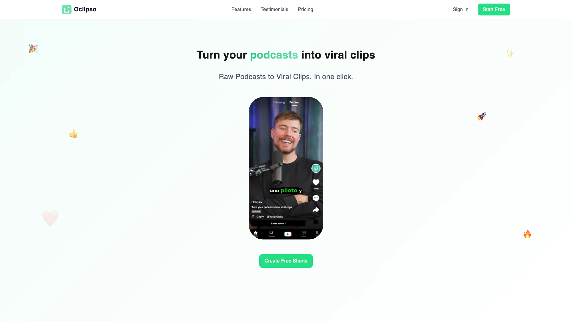 Oclipso là một nền tảng sáng tạo được thiết kế để biến nội dung podcast thô thành những clip viral hấp dẫn chỉ với một cú nhấp chuột. Bằng cách tận dụng công nghệ AI tiên tiến, Oclipso phân tích toàn bộ podcast để xác định và trích xuất những khoảnh khắc có thể chia sẻ và có tác động nhất, giúp các podcaster mở rộng phạm vi tiếp cận và tương tác với khán giả. Công cụ này hỗ trợ nhiều định dạng mạng xã hội, giúp dễ dàng tạo ra các clip tối ưu cho các nền tảng như Instagram Reels, TikTok và YouTube Shorts. Với các tính năng như chỉnh sửa tự động, tạo phụ đề và hiệu ứng hình ảnh, Oclipso đơn giản hóa quy trình tạo nội dung, giúp các nhà sáng tạo tối đa hóa tiềm năng của podcast.