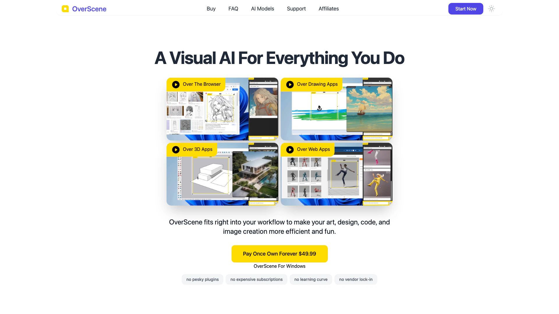 - Tích hợp liền mạch với bất kỳ phần mềm nào: OverScene hoạt động với tất cả các ứng dụng chính, nâng cao sự sáng tạo mà không cần plugin, khiến nó trở nên linh hoạt cho các nghệ sĩ và nhà thiết kế.