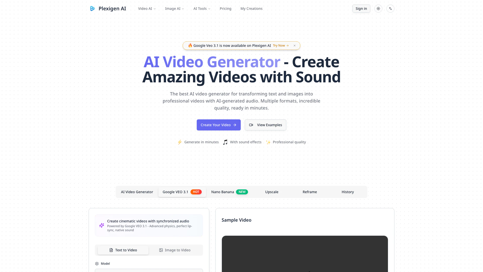 Plexigen AI là một trình tạo video AI tiên tiến được thiết kế để tạo ra video chất lượng cao từ văn bản và hình ảnh, kèm theo âm thanh đồng bộ. Công cụ sáng tạo này tận dụng công nghệ tiên tiến, bao gồm Google VEO 3.1, để cung cấp nội dung video chuyên nghiệp một cách nhanh chóng và hiệu quả. Với Plexigen AI, người dùng có thể biến ý tưởng của họ thành những video động ở nhiều định dạng khác nhau, khiến nó trở thành giải pháp lý tưởng cho mạng xã hội, tiếp thị và các dự án sáng tạo.
