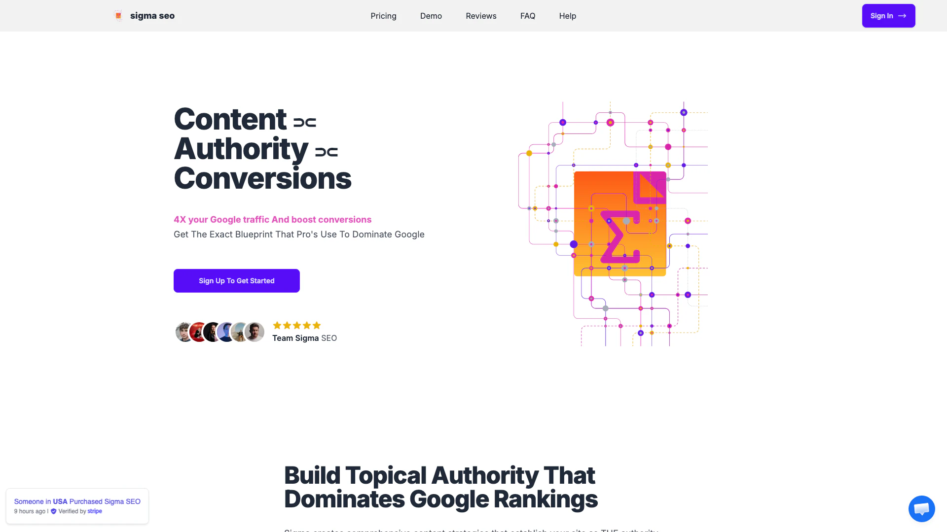 Sigmaseo là một công cụ tạo nội dung SEO tiên tiến được hỗ trợ bởi AI, được thiết kế để tạo ra nội dung SEO xác thực, hấp dẫn và có thứ hạng cao mà ngay cả Google cũng không thể phân biệt được với văn bản do con người viết. Bằng cách tận dụng các thuật toán tinh vi, Sigmaseo cho phép người dùng phát triển các chiến lược nội dung toàn diện nhằm thiết lập quyền lực trong bất kỳ ngách nào. Công cụ này cung cấp các tính năng như tạo trang trụ cột, bài viết hỗ trợ và nội dung cuối phễu (BOFU) hiệu quả trong việc chuyển đổi khách truy cập thành khách hàng. Sigmaseo hoàn hảo cho các nhà tiếp thị, người sáng tạo nội dung và các chuyên gia SEO đang tìm cách nâng cao sự hiện diện trực tuyến và cải thiện thứ hạng trên công cụ tìm kiếm.