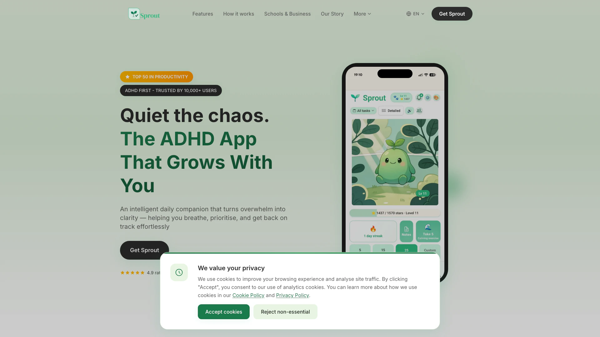 Sprout được thiết kế đặc biệt cho người dùng ADHD và AuDHD, cung cấp các công cụ giúp lập kế hoạch, ưu tiên và quản lý nhiệm vụ một cách hiệu quả.