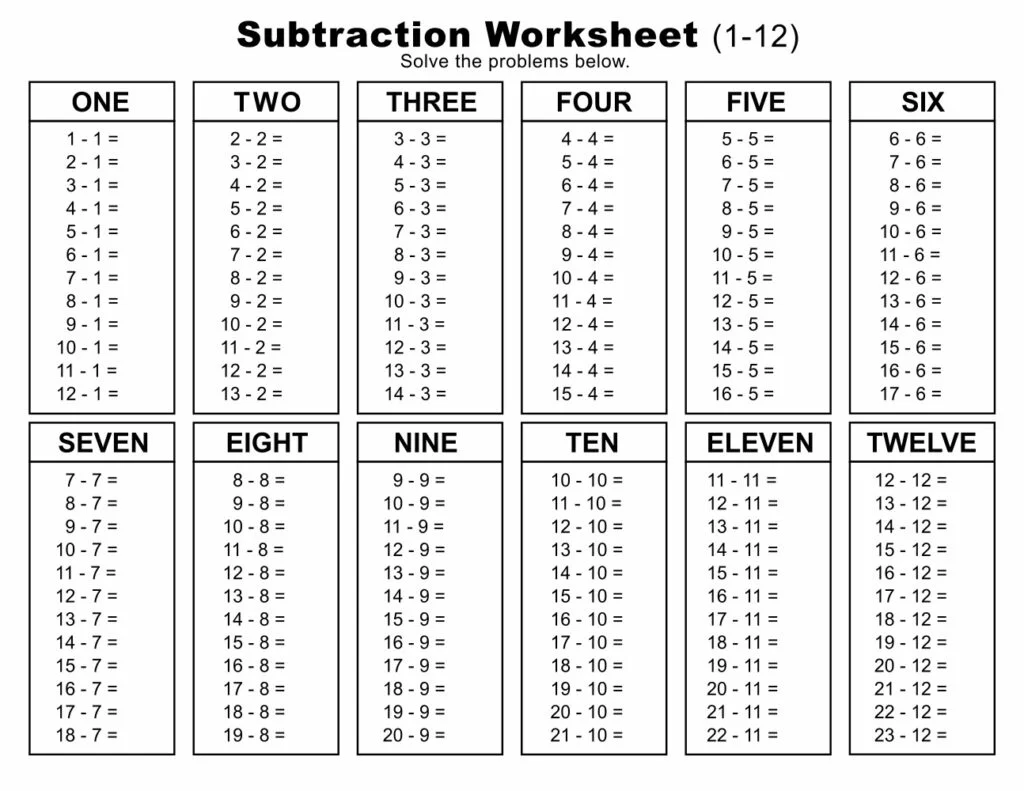 - Một loạt các bảng trừ và tài liệu in ấn miễn phí được thiết kế cho các cấp độ học tập khác nhau.