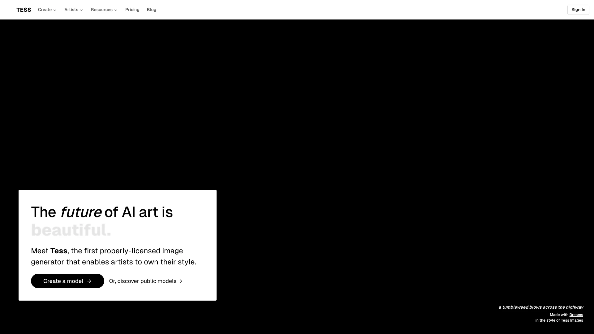 - Bồi thường Nghệ sĩ Đạo đức: Tess là trình tạo hình ảnh AI đầu tiên đảm bảo rằng các nghệ sĩ được bồi thường cho công việc của họ, cho phép họ kiếm tiền mỗi khi mô hình của họ được sử dụng.