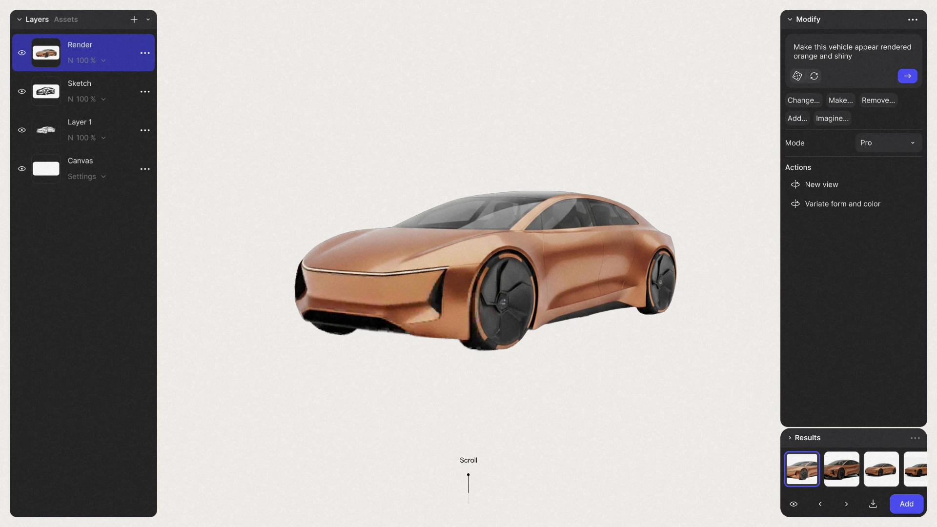 - Kết xuất khái niệm của bạn: Nhấn nút kết xuất để biến bản phác thảo của bạn thành một mô hình 3D chân thực.