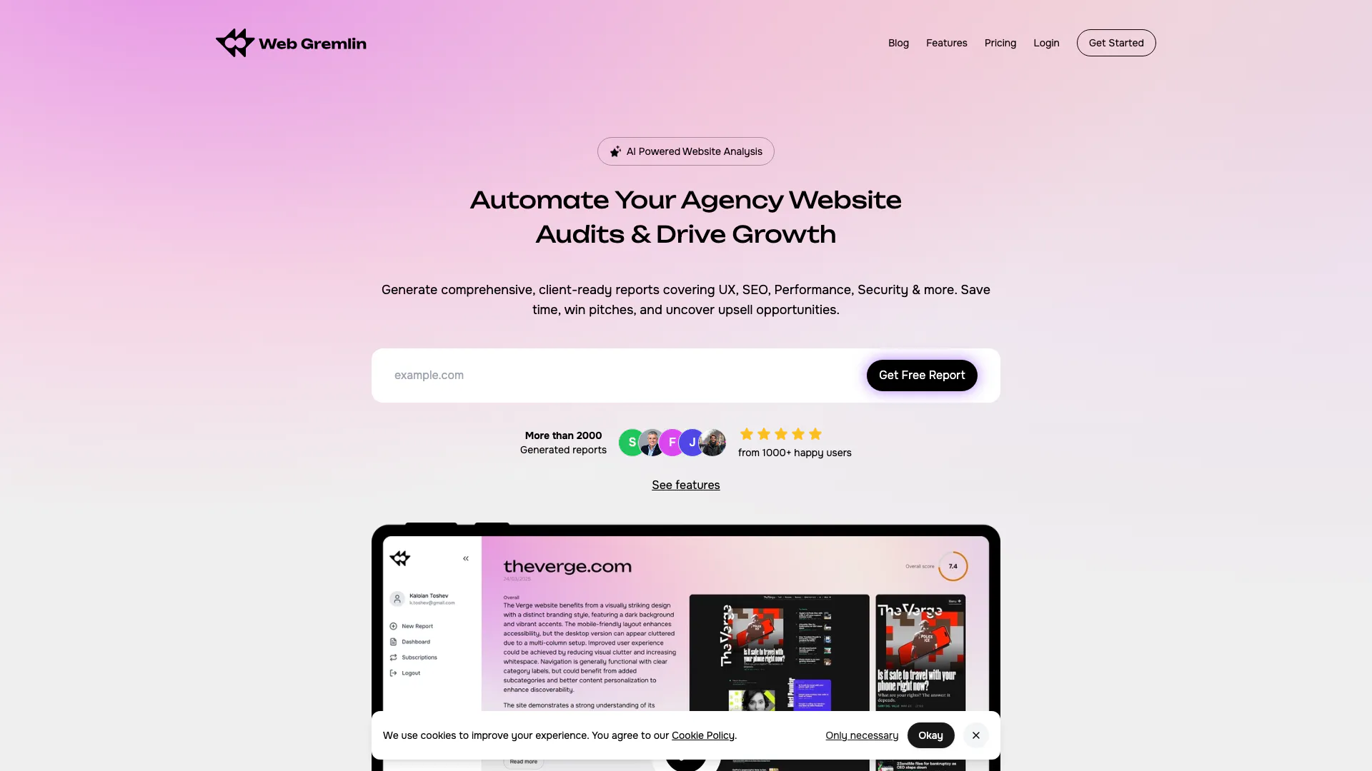 - Phân tích hỗ trợ AI: Để Web Gremlin đánh giá trang web của bạn trên các danh mục chính bao gồm SEO, hiệu suất và trải nghiệm người dùng.