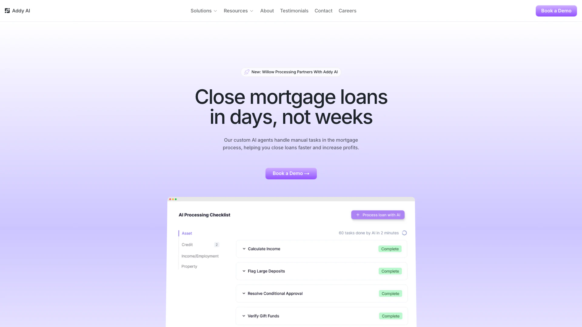 使用 Addy AI,我们能够比以前更快地完成贷款。AI 工具非常高效且用户友好。