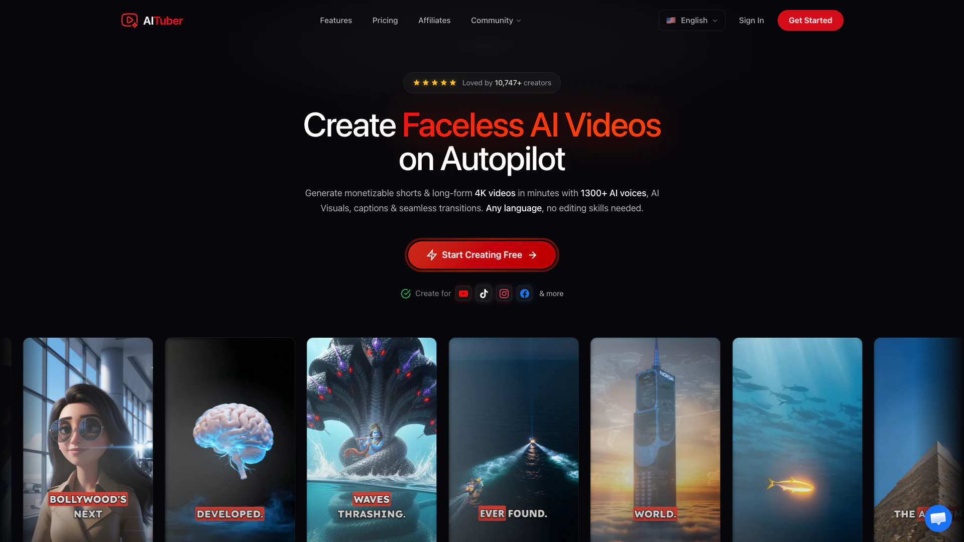 AITuber是一个由人工智能驱动的视频创作平台,帮助您在几分钟内创建高质量的无脸视频。只需提供一个想法或脚本,AI就会生成专业的视频,配有旁白、惊艳的视觉效果和字幕——非常适合YouTube、TikTok、Instagram Reels等平台。