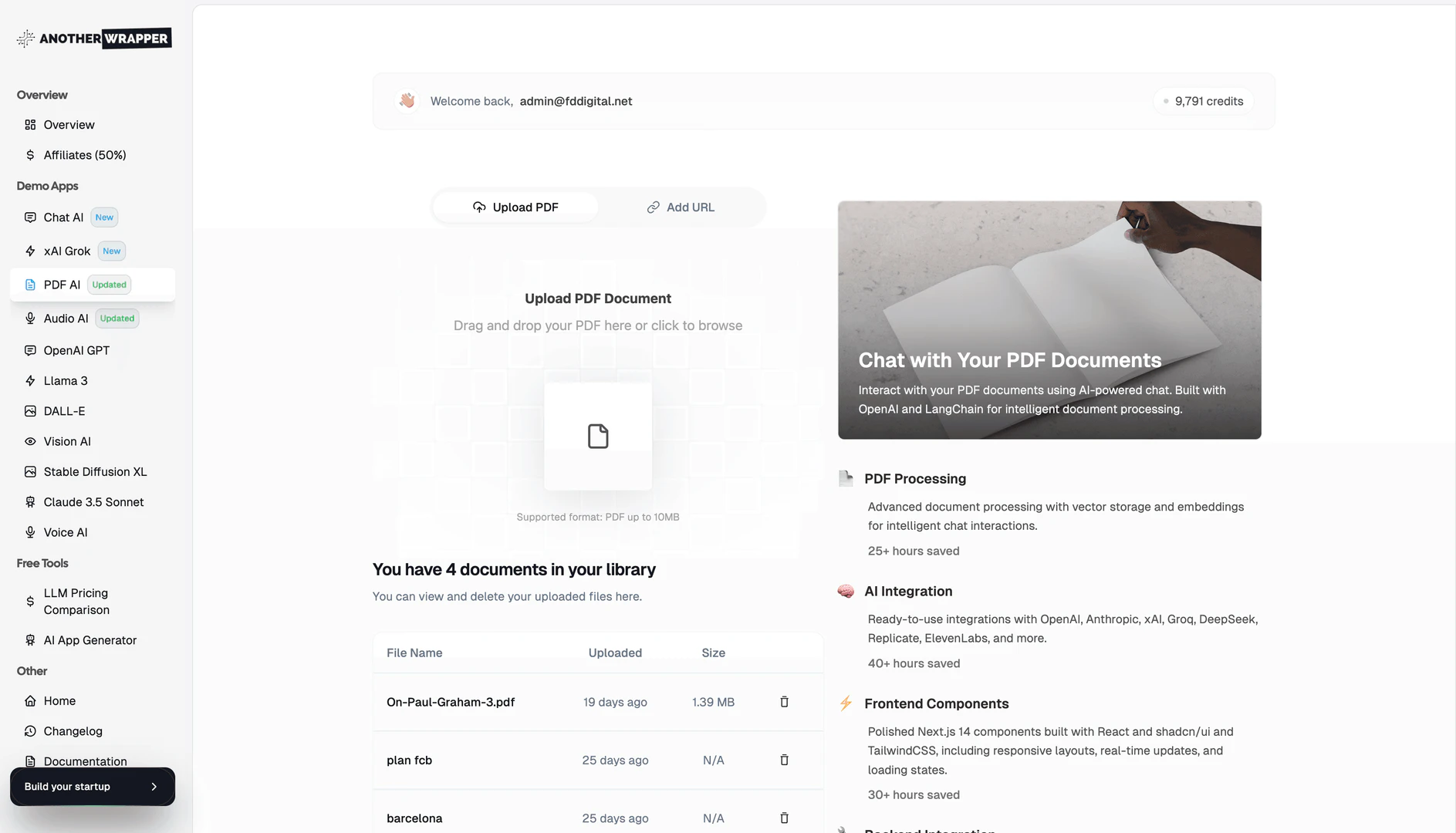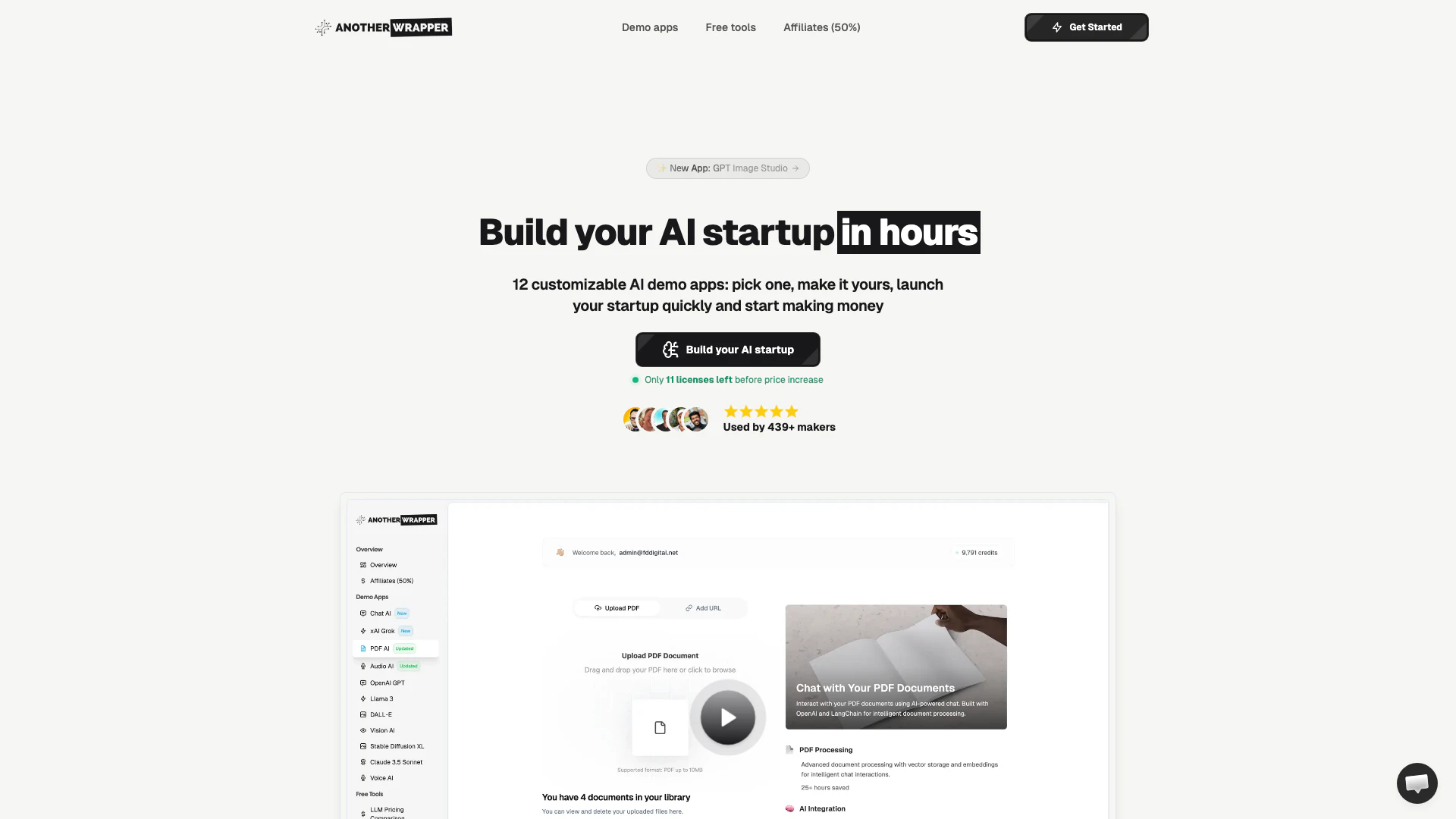 使用 AnotherWrapper,您将获得一个全面的 Next.js AI 启动工具包,其中包括可自定义的模板、演示应用程序以及身份验证、支付和分析等基本服务。