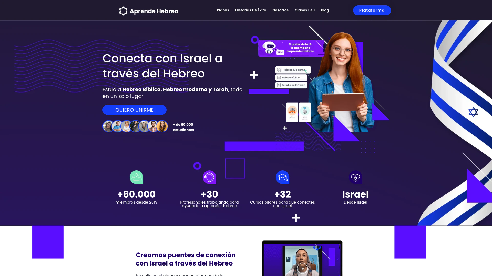 现代希伯来语 + 圣经 + 托拉,现代希伯来语直播课程,400小时视频课程,智能练习,24/7与导师的实践教室,沉浸式直播研讨会,证书,与Morá IA的无限聊天,直播课程的PDF幻灯片,额外赠送:托拉学习的直播课程。