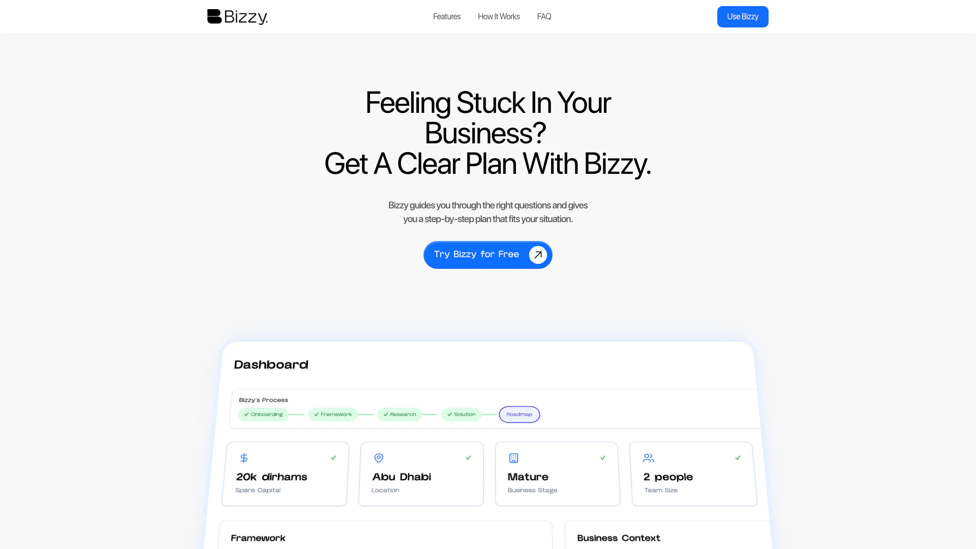 - 逐步商业规划: Bizzy提供了一个清晰的逐步计划,量身定制以满足您的商业需求,帮助您有效应对挑战。