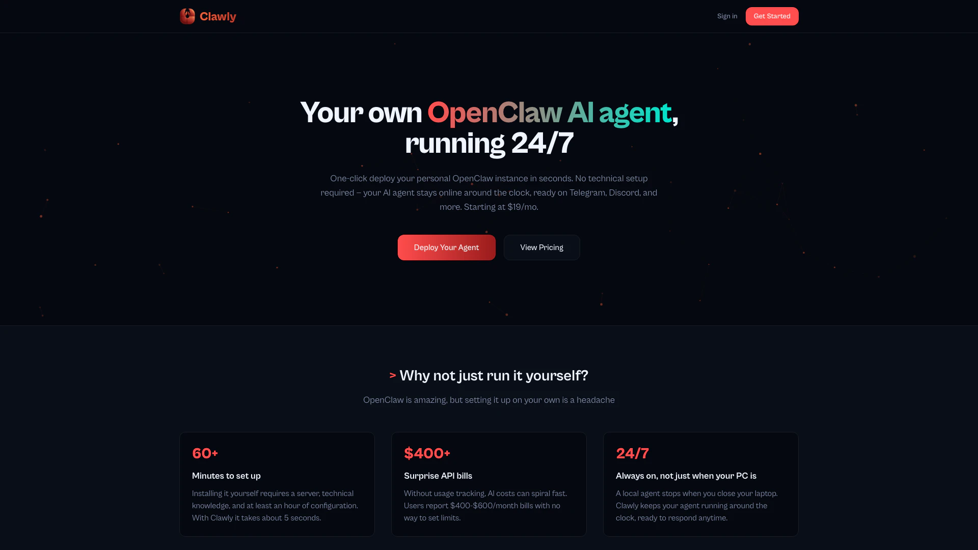 Clawly是一个平台,允许您一键部署个人OpenClaw AI代理,无需技术设置。您的AI代理在Telegram和Discord等平台上全天候在线。