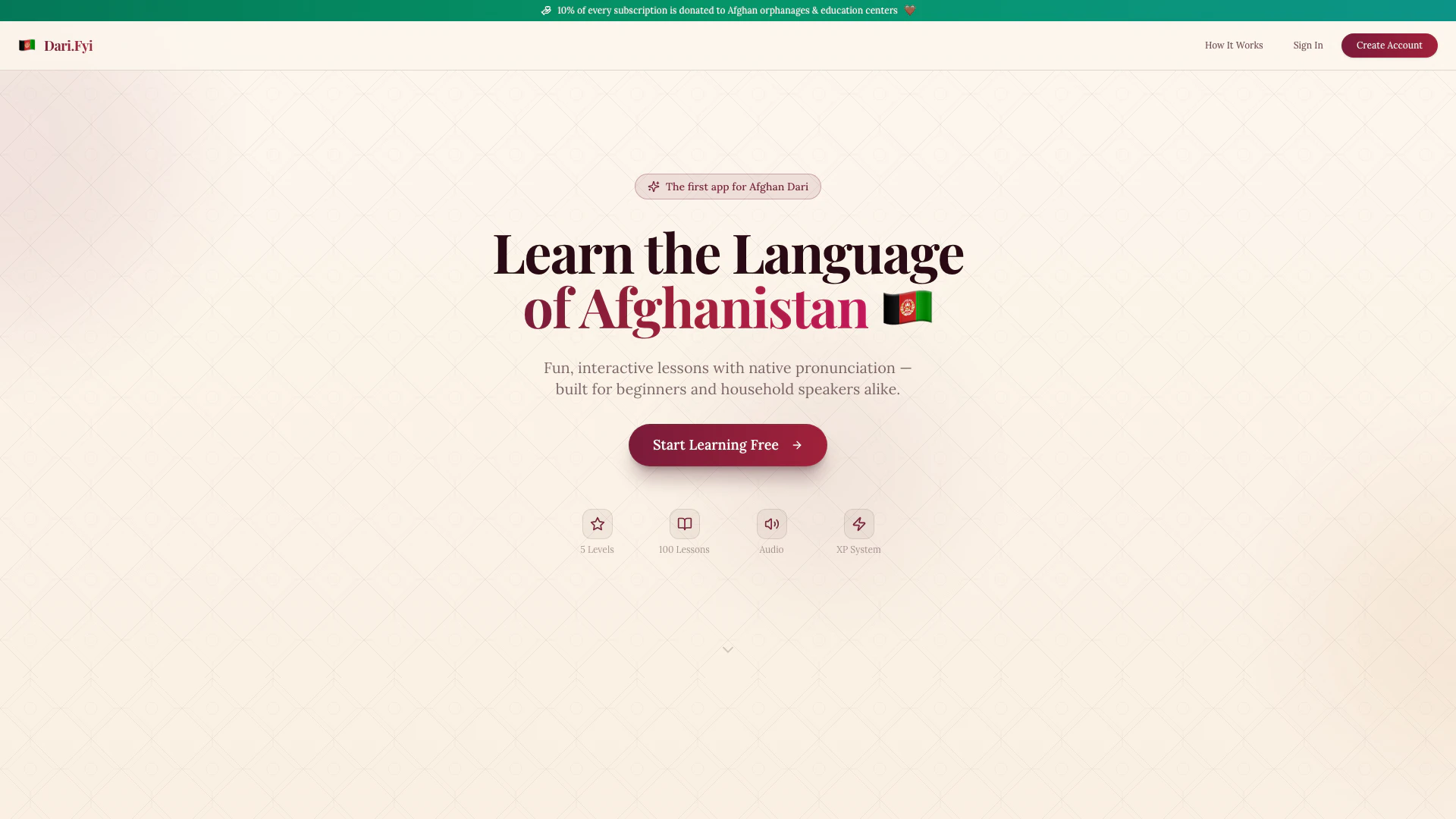通过互动课程学习达里语,配有母语音频。