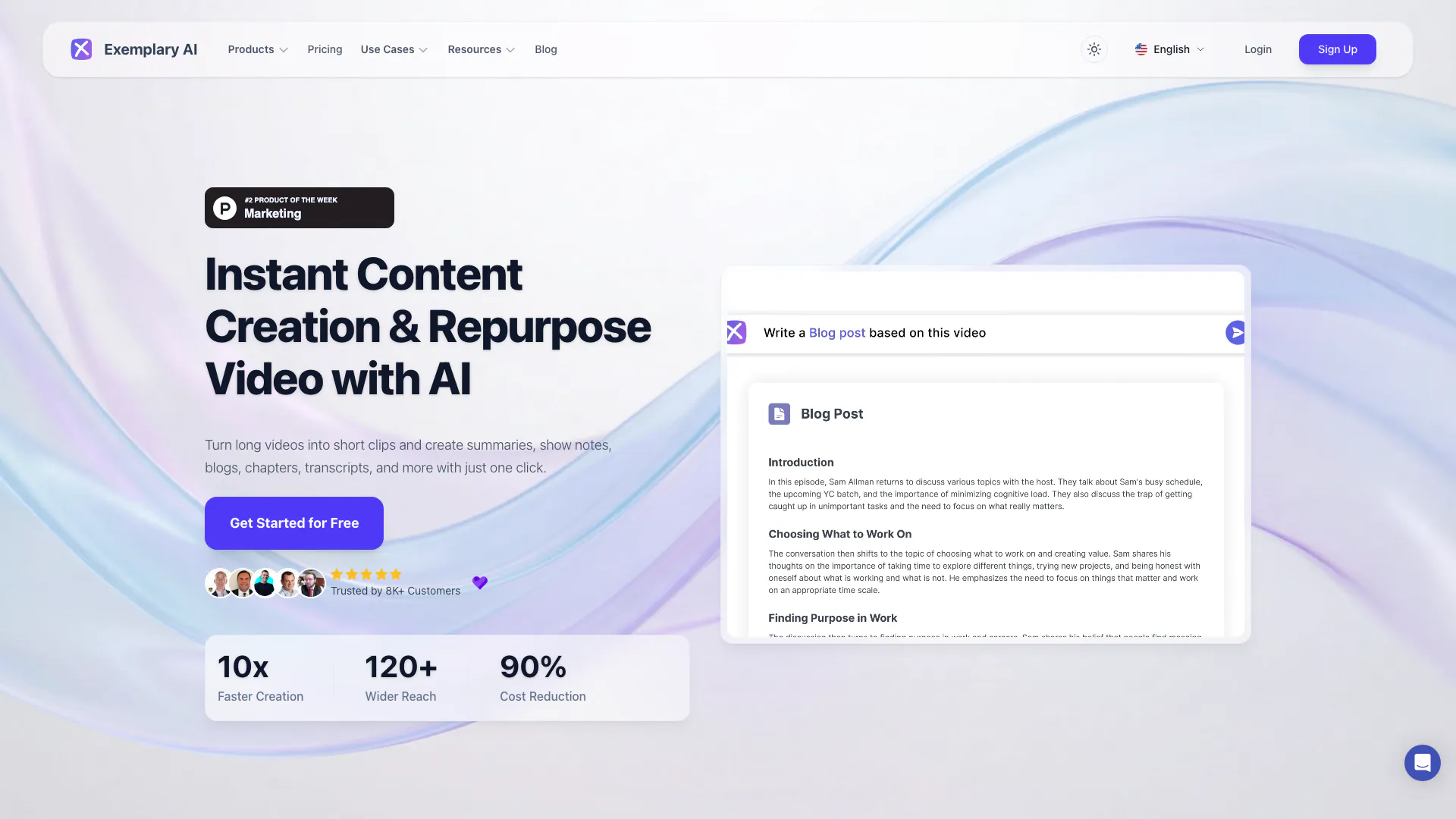 将播客、网络研讨会和视频转化为可分享的片段、转录文本、摘要和社交帖子。Exemplary AI 一应俱全。