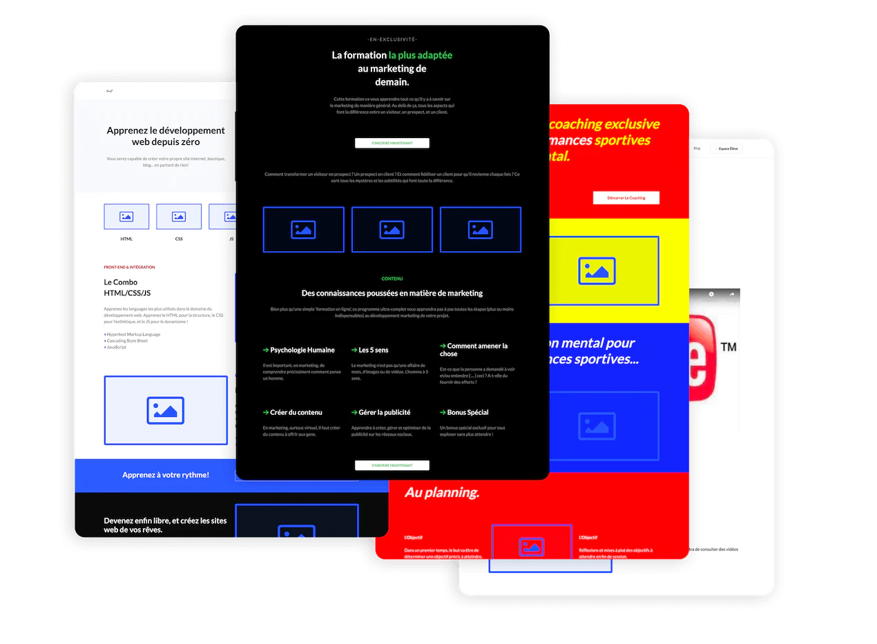 24/7支持(法语),域名,SSL证书,自定义域名,无限制课程,无限制服务,无限制课程包,无限制订阅,无限制文章,无限制联系人,每月100000封通讯,活动,无限制自定义页面,无限制折扣券,无限制学生,500GB存储,发票,安全交易,快速支付,分期付款,Stripe,PayPal,Google Analytics,Facebook Messenger,Zapier。