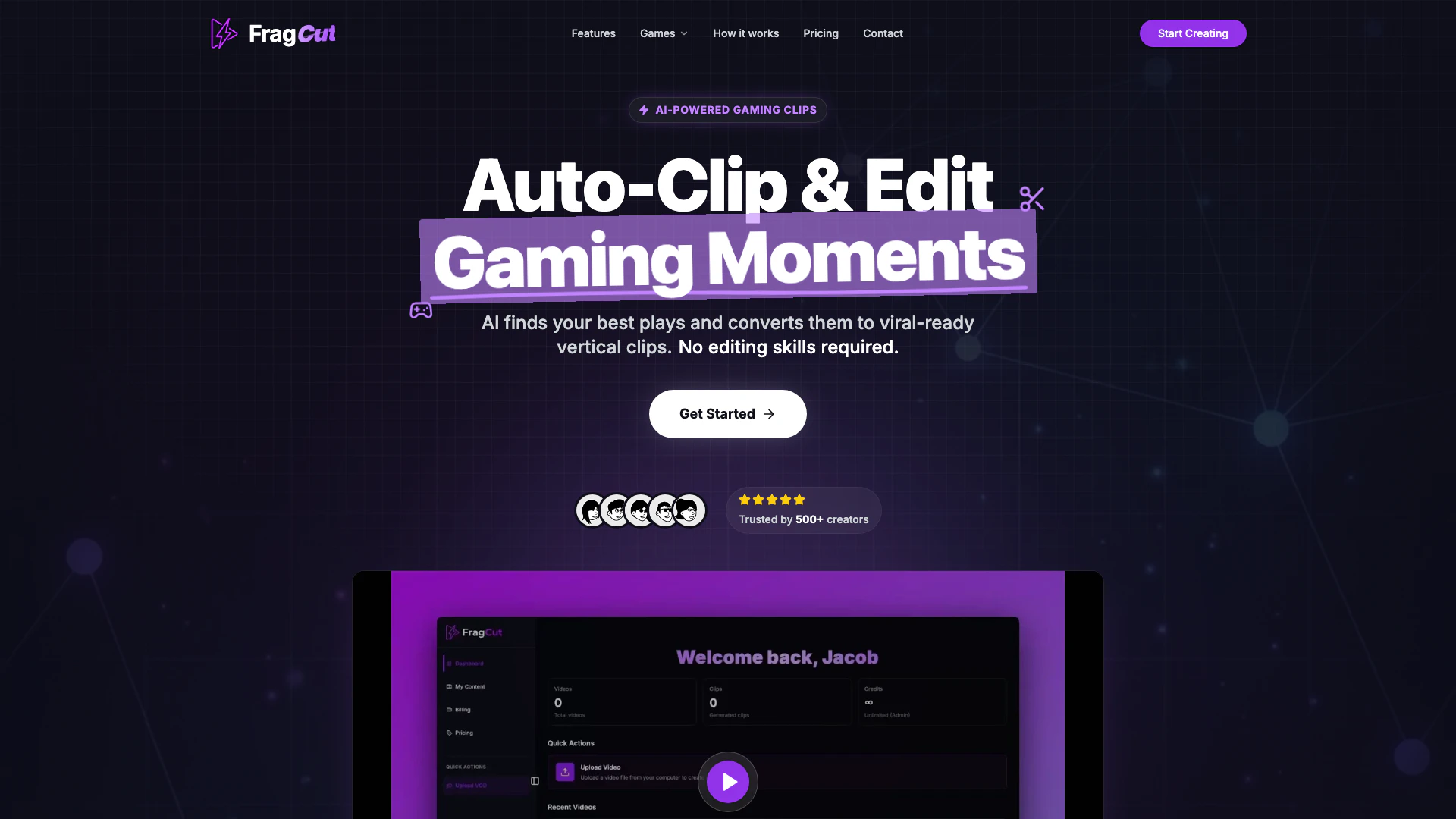 FragCut 专为游戏玩家、主播和内容创作者量身定制,他们希望通过分享引人入胜和病毒式传播的游戏剪辑来增强社交媒体的存在感。无论您是 Twitch 主播、YouTube 游戏玩家,还是希望分享精彩片段的休闲玩家,FragCut 提供了一种高效的解决方案,将您冗长的游戏视频转化为短小易分享的剪辑,能够与 TikTok 和 Instagram 等平台上的观众产生共鸣。