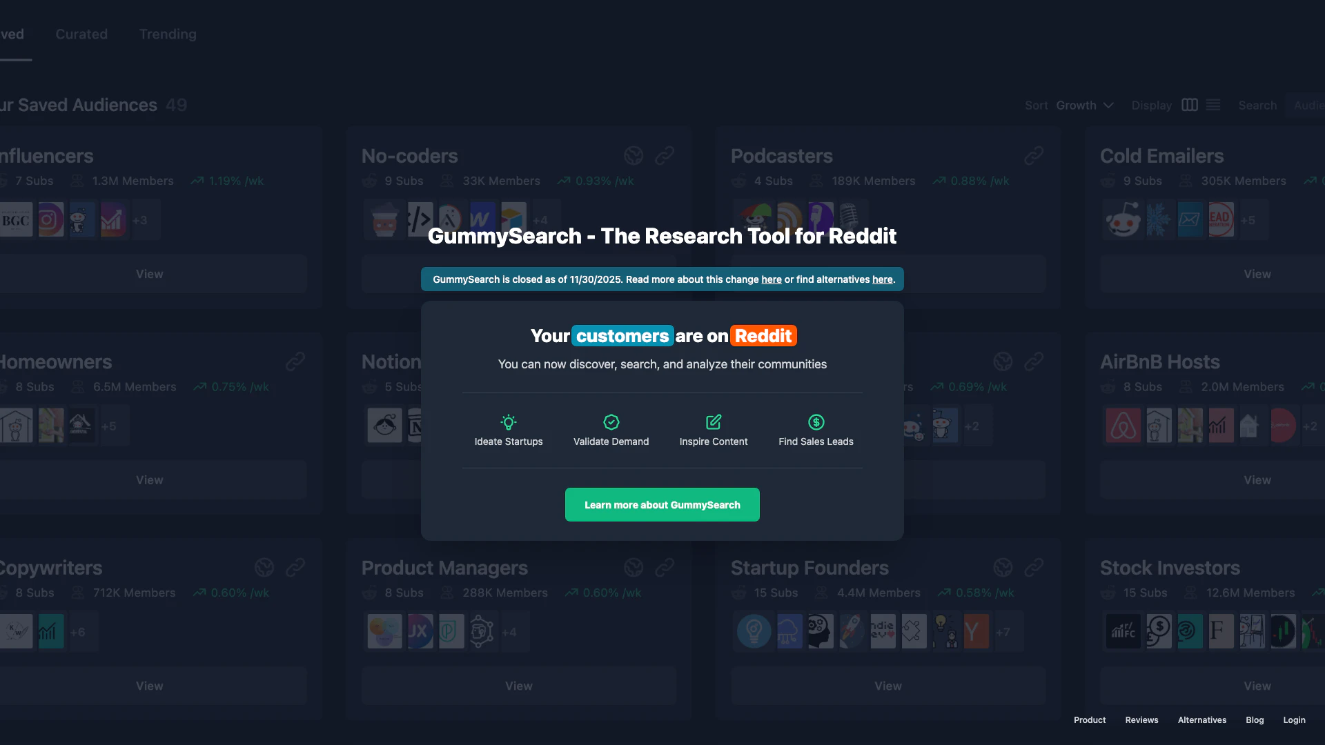 - 细分市场探索工具: Gummysearch 允许用户有效地探索任何细分市场,帮助识别痛点和内容机会。