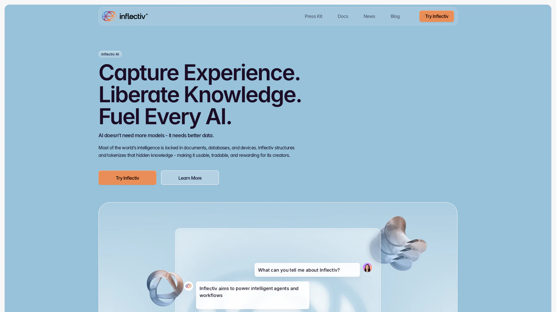 - 转化非结构化数据: Inflectiv将非结构化数据转化为结构化、标记化的智能,使其可用于AI代理和可交易。