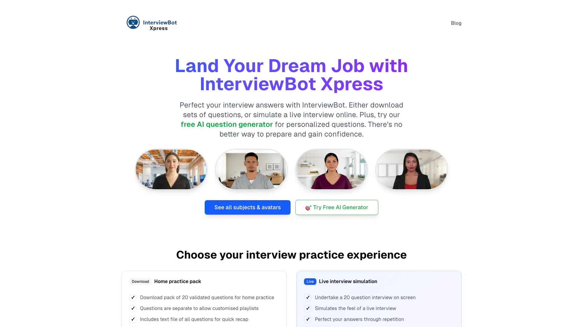 这些头像让练习感觉真实。我在使用 InterviewBot Xpress 后找到了我的梦想工作!