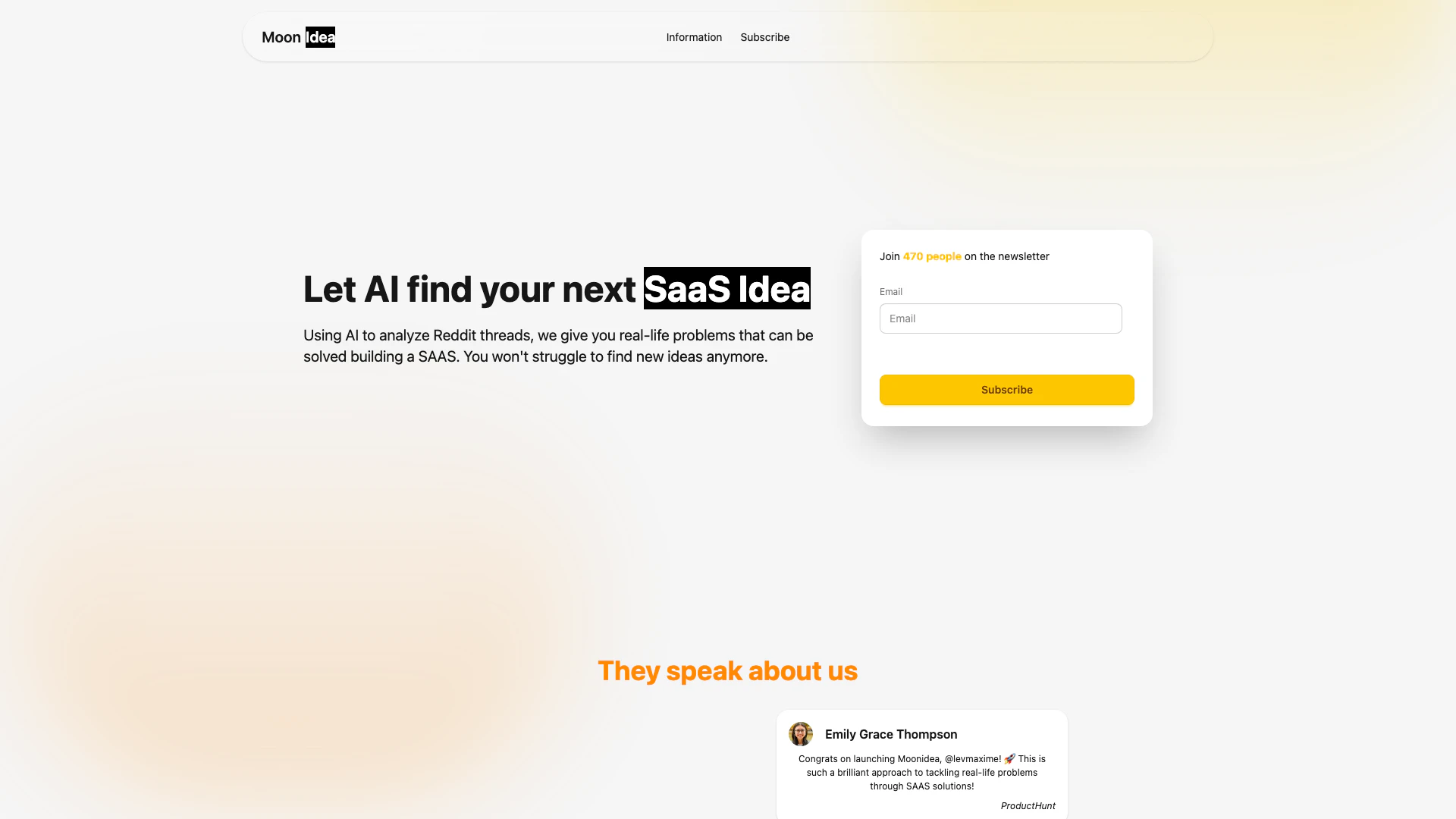 - 人工智能驱动的创意生成: Moonidea利用人工智能分析Reddit线程,为用户提供可以通过SaaS解决方案解决的现实问题,使创意生成变得更容易。
