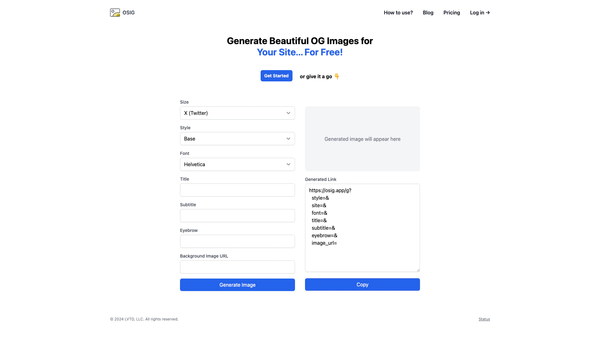 - 免费图像生成: Osig允许用户免费生成美丽的OG图像,使每个人都能轻松使用。