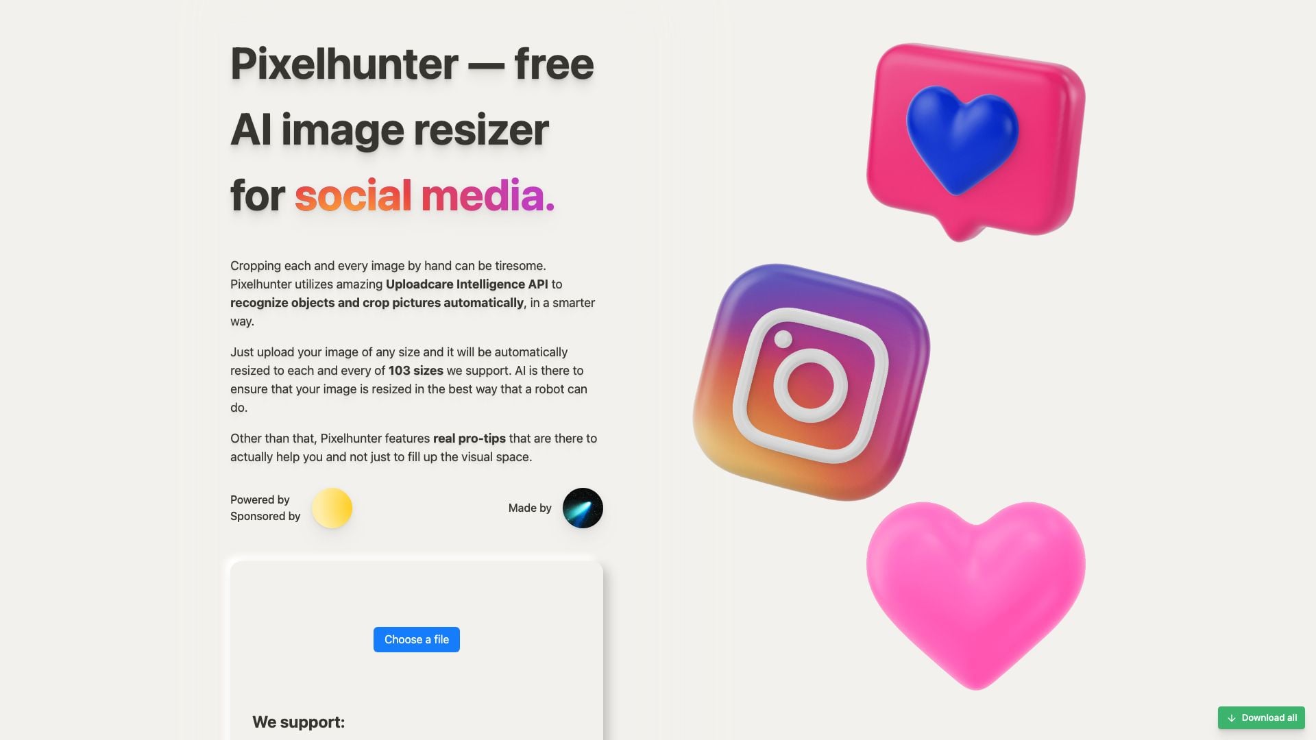 Pixelhunter是一个免费的AI图像缩放工具,能够智能地自动识别对象并裁剪图片。