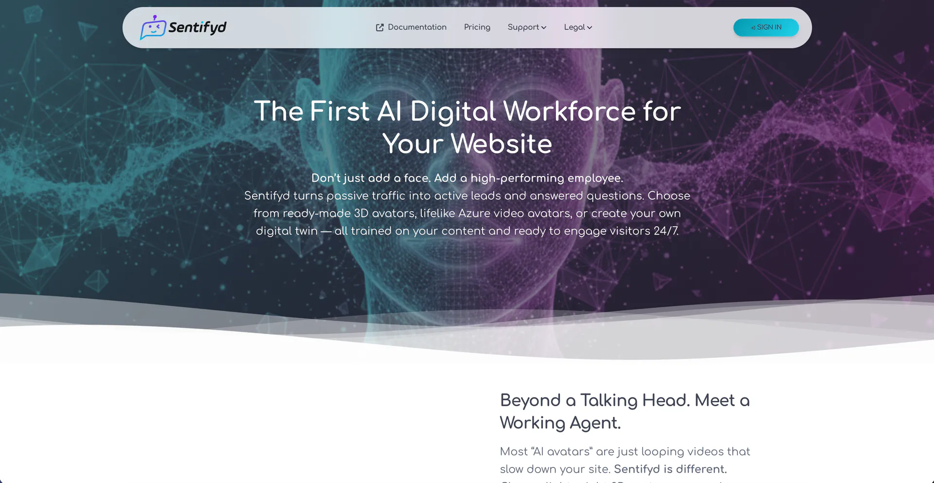 - 互动3D头像: Sentifyd允许创建互动3D AI数字头像,增强网站上的用户参与度。