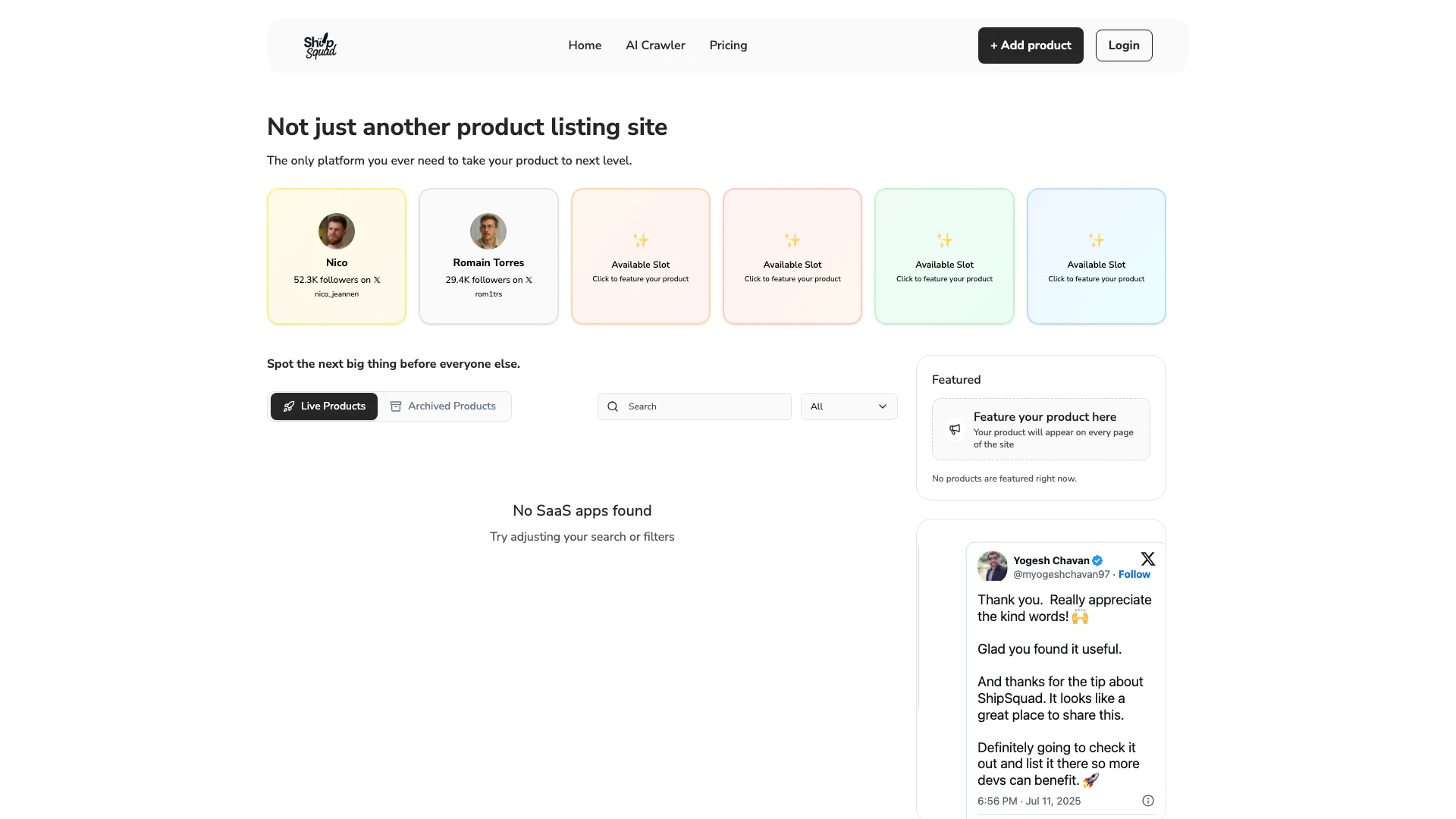 - 综合产品展示平台: Shipsquad作为一个一站式平台,展示和发现产品,使用户更容易找到和推广他们的产品。