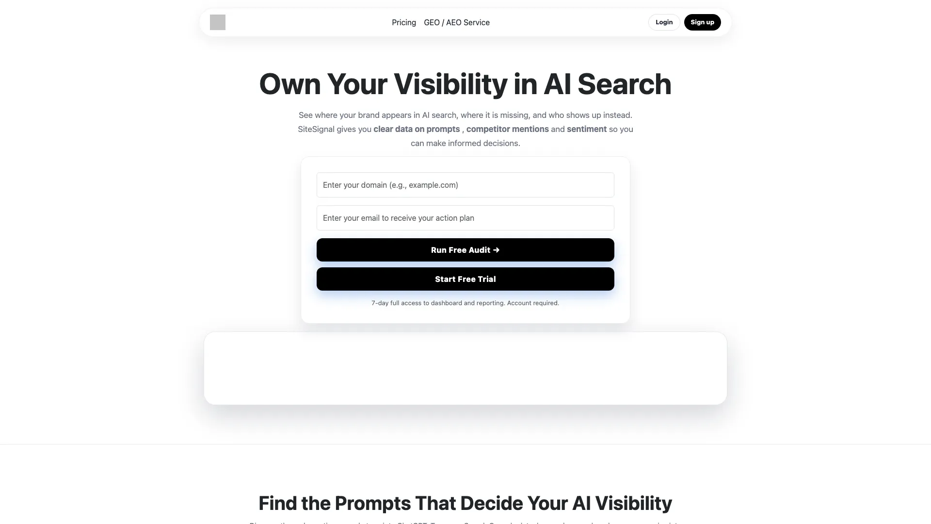- 输入您的网站域名以启动免费的 AI 可见性审计。