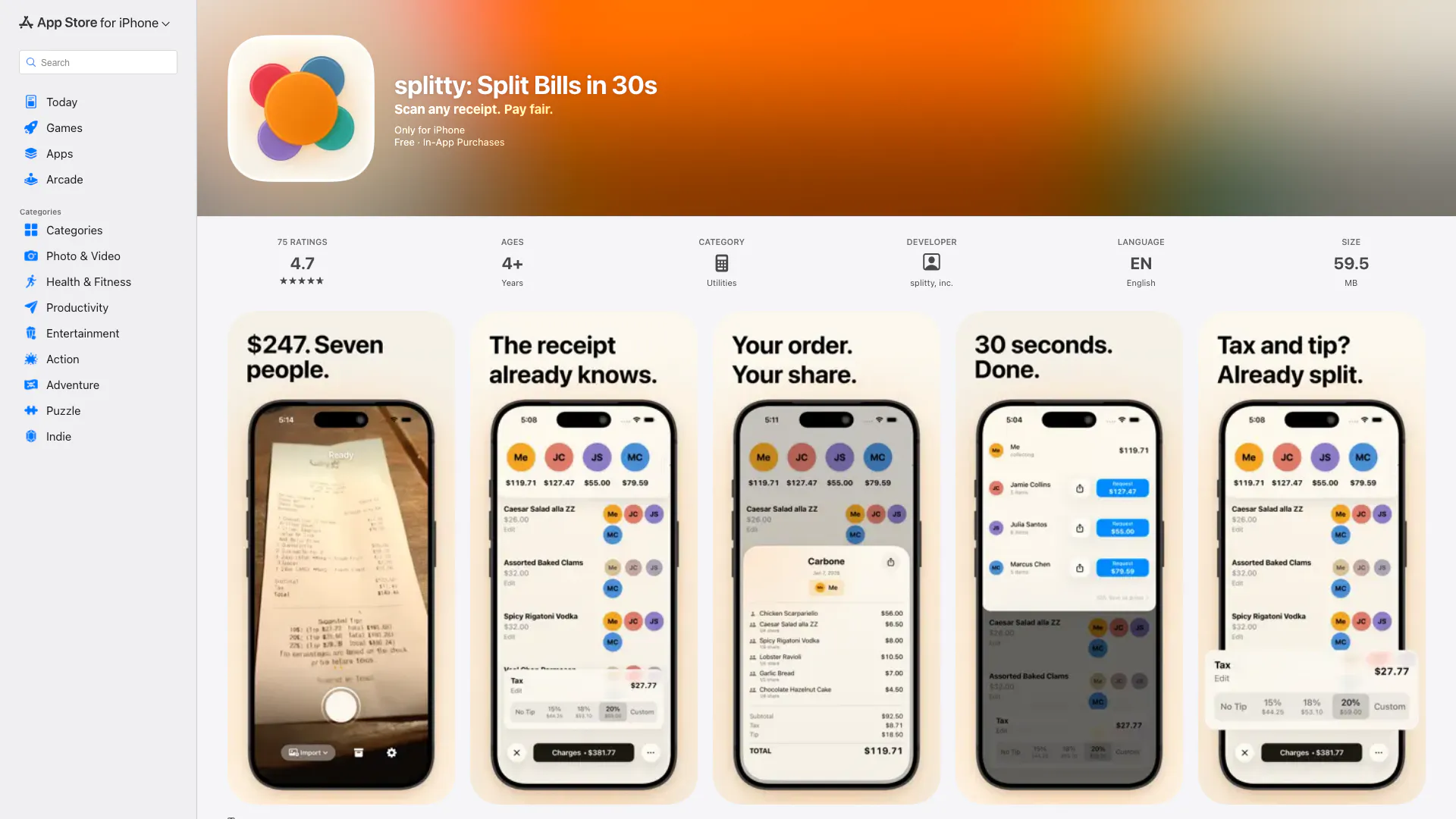 Splitty应用程序仅在iPhone的App Store上提供。