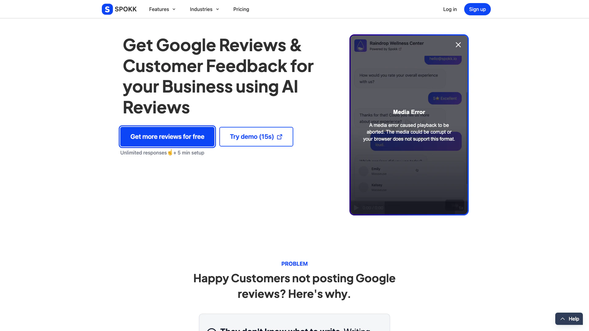 - 自动化评论生成: Spokk利用人工智能根据客户反馈自动撰写个性化的Google评论,使客户能够轻松留下评论,而无需亲自撰写。