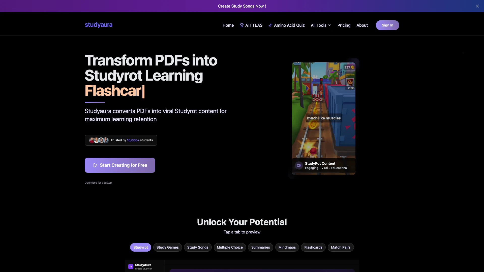 - 引人入胜的视频制作: Studyaura将PDF转换为引人入胜的病毒式教育视频,使学习变得有趣且难以忘怀。