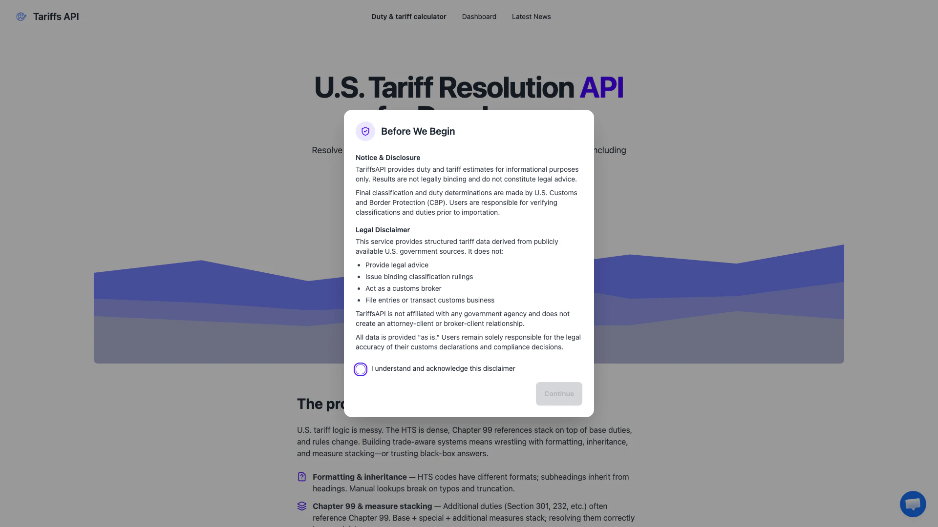 为我们节省了几天构建自己的关税查询。一个端点,清晰的JSON。