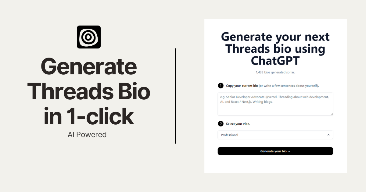 Threads Bio 是一个帮助您在几秒钟内为 Threads 个人资料生成个性化简介的工具。