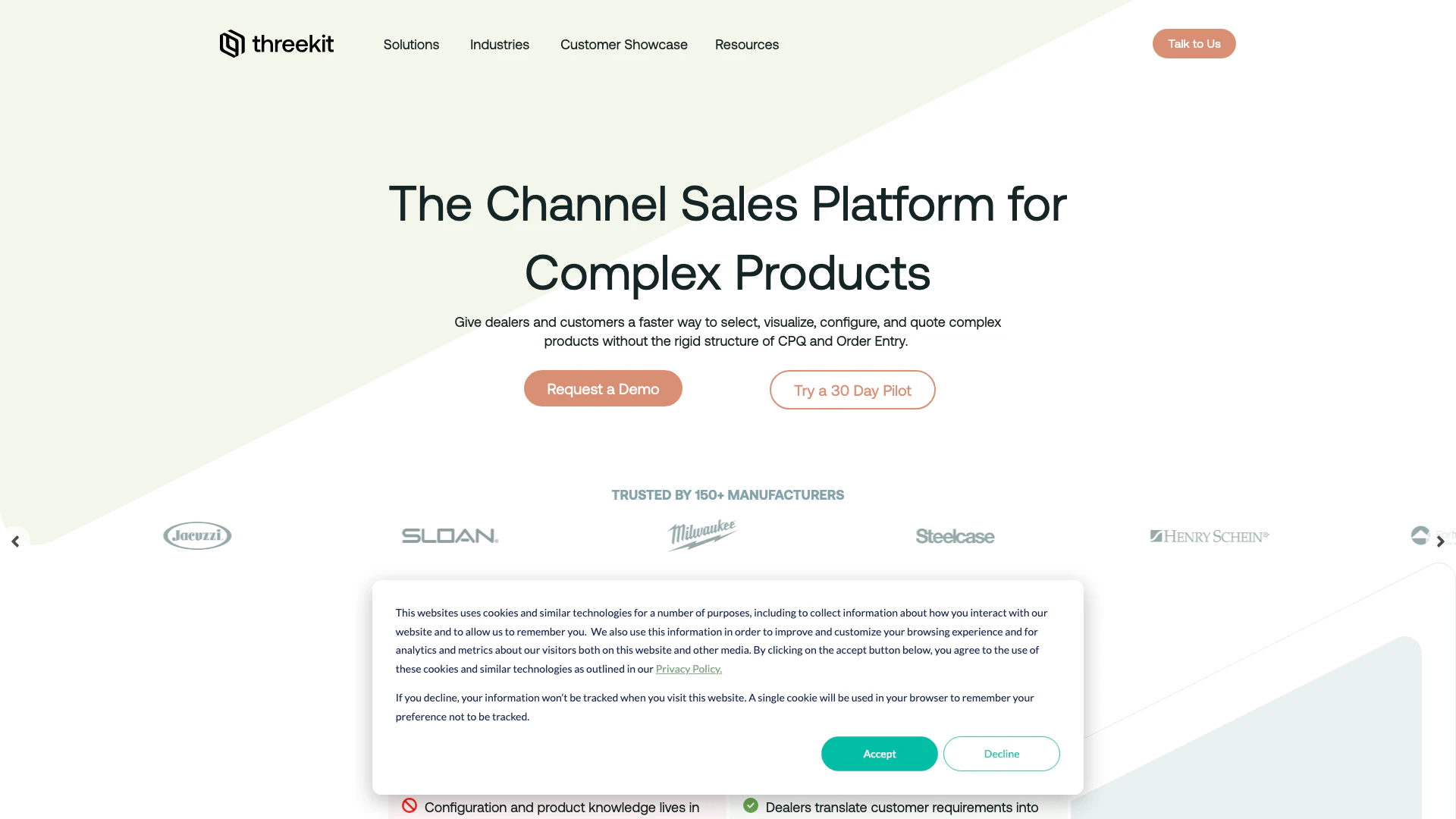 Threekit是一个现代化的配置报价工作流程,旨在支持渠道销售,使经销商和客户能够选择、可视化、配置和报价复杂产品。