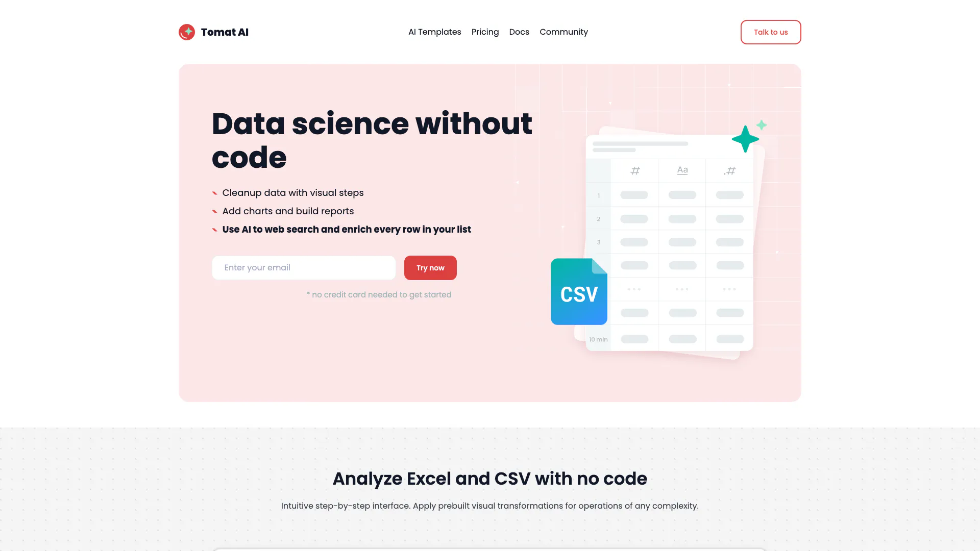 - 无代码数据分析: Tomatai允许用户在没有任何编码技能的情况下分析CSV和Excel文件,使数据科学对每个人都可访问。