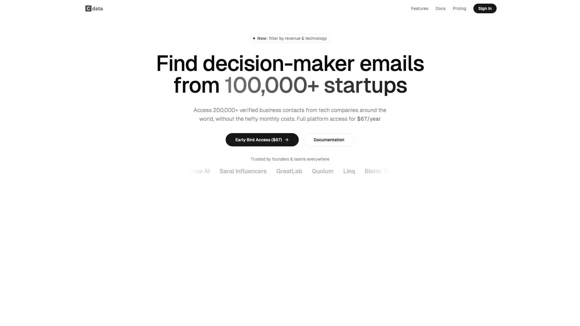 - 找到初创公司决策者的经过验证的电子邮件地址,以进行外展活动。