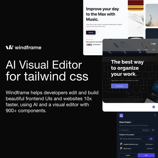 Build stunning websites effortlessly with Windframe's AI-powered tools.