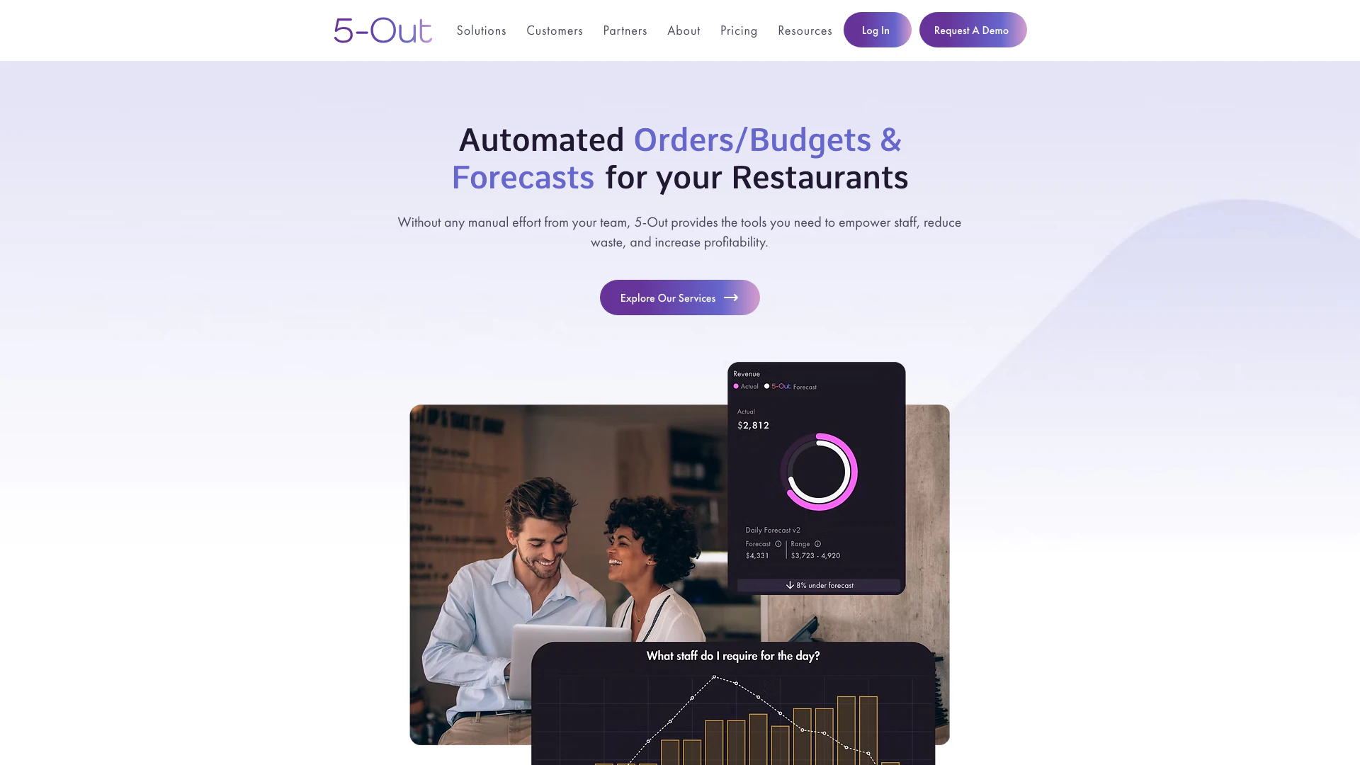 5-Out is an AI-powered forecasting and automation platform for restaurants. It predicts future sales, automates prep and purchasing, improves labor planning, and gives operators data-driven visibility into food cost performance. The platform uses your real data — menu items, historical sales, staffing, ingredients, recipes, and inventory — to help operators run more profitably and with less guesswork.