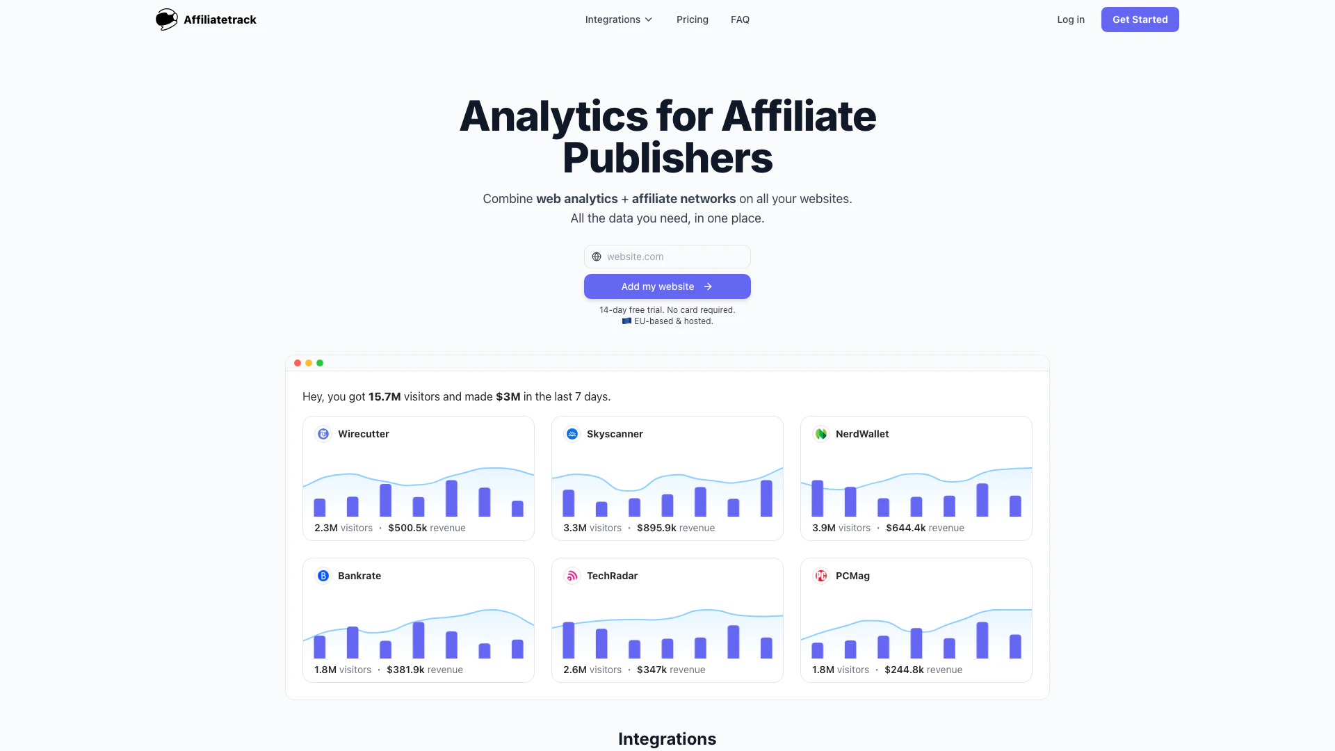 Affiliatetrack is an analytics tool designed for affiliate publishers that allows users to integrate networks alongside their web analytics, combining both web analytics and affiliate networks on all their websites.