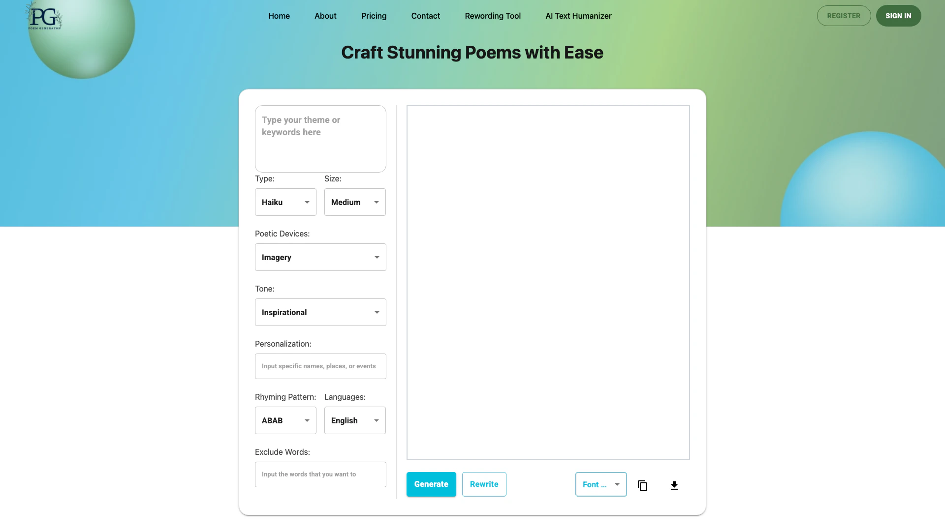 - Customizable Lengths: Users can select the length of their poems—short, medium, or long.