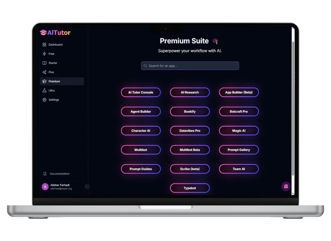 Most Popular - GPT o1 & o3 + Agents, AI Tutor Starter + Plus, Over 15 Unique Apps, GPT o1 and o3 Reasoning, Document Analysis, Developer Tools, Multibot UI