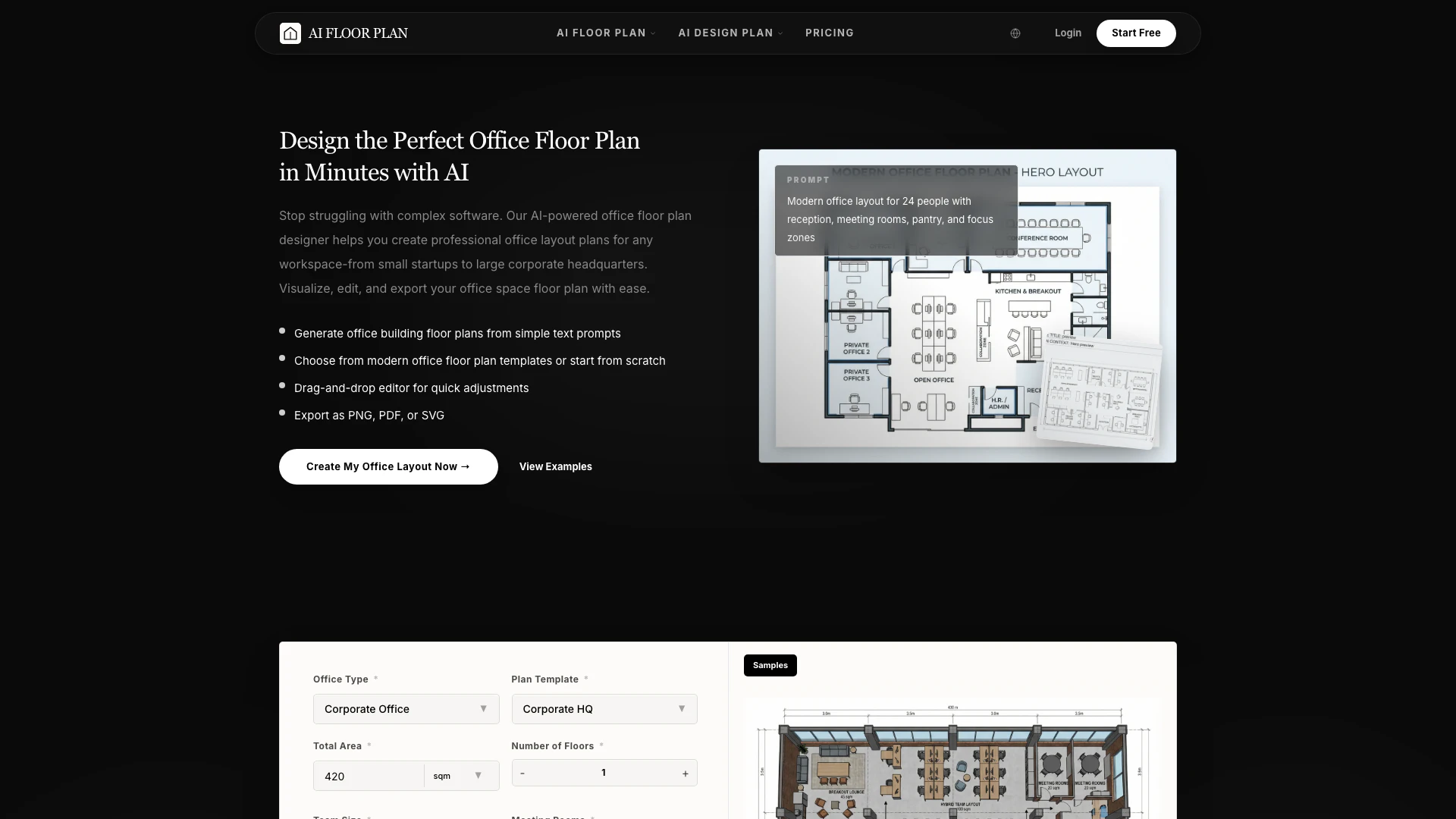 - AI-powered generation of office floor plans in seconds.