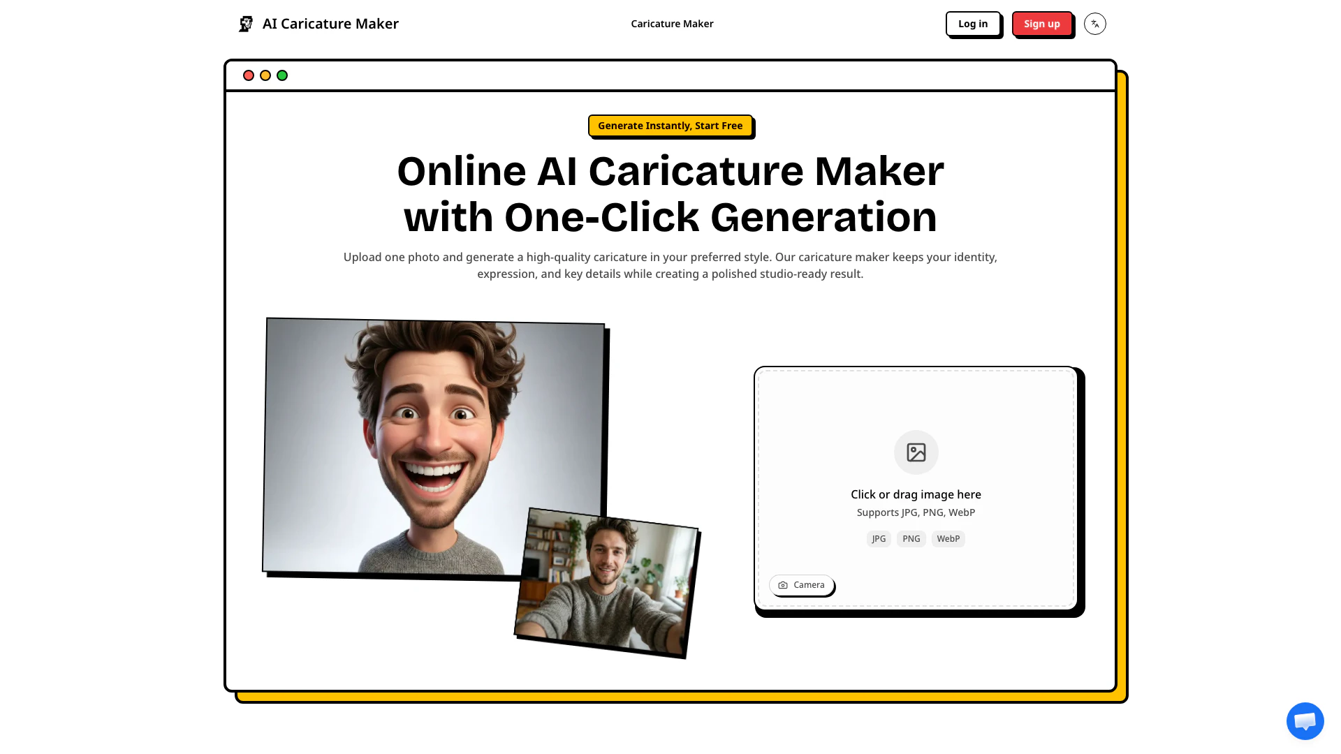 - One-click caricature generation that preserves identity and facial features.
