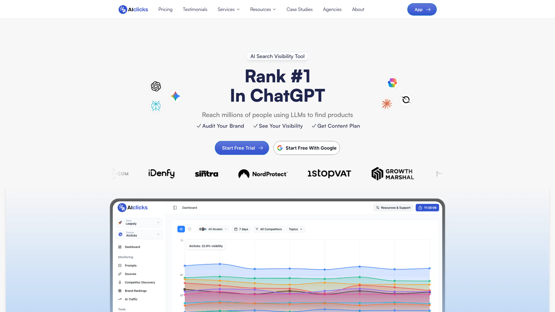 - Competitor Benchmarking: Agencies can compare their clients' AI visibility against competitors to identify strengths and weaknesses in their AI marketing strategies.