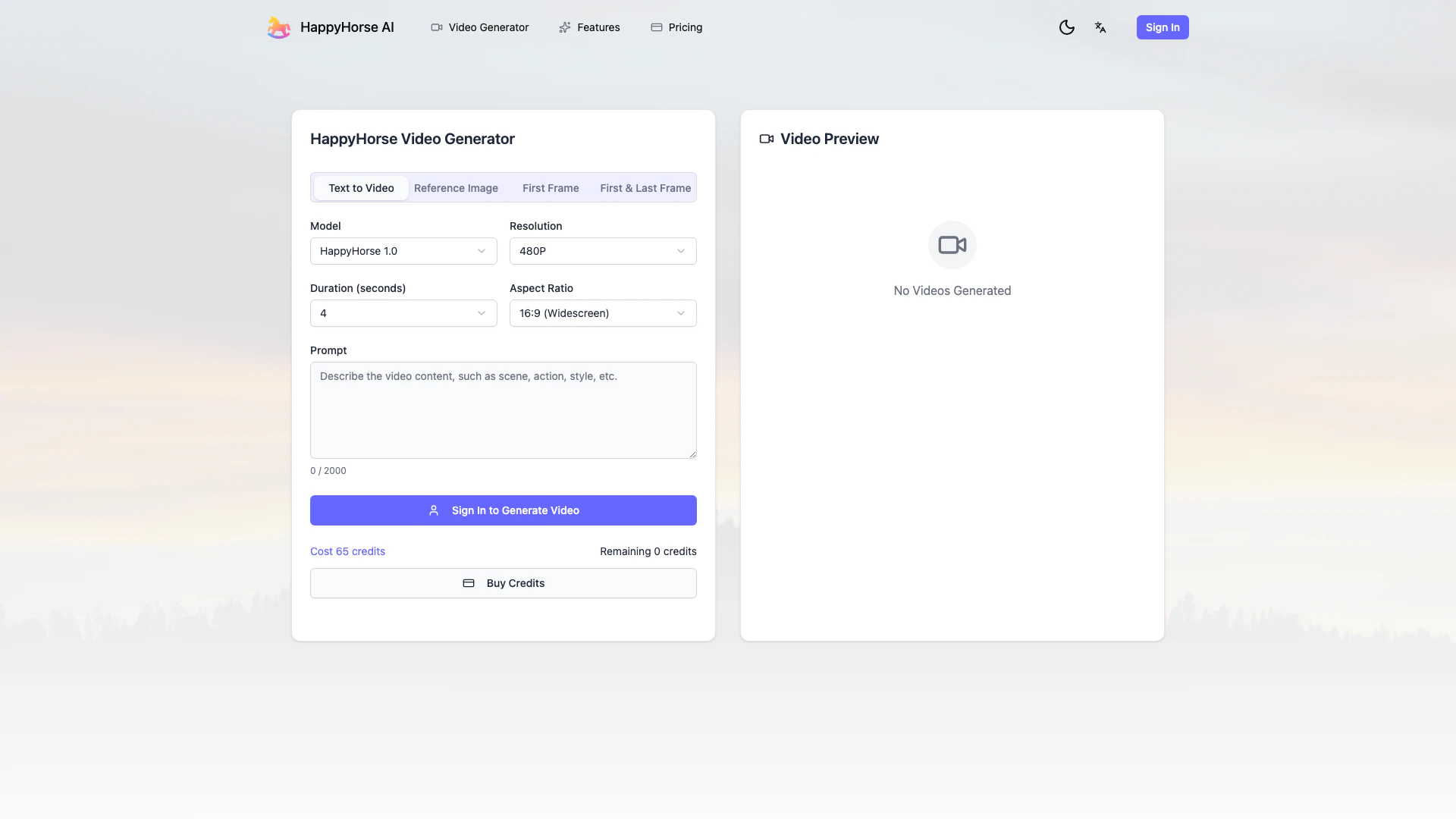 - Visit the HappyHorse website at https://aihappyhorses.com/ and navigate to the AI Video Generator section.