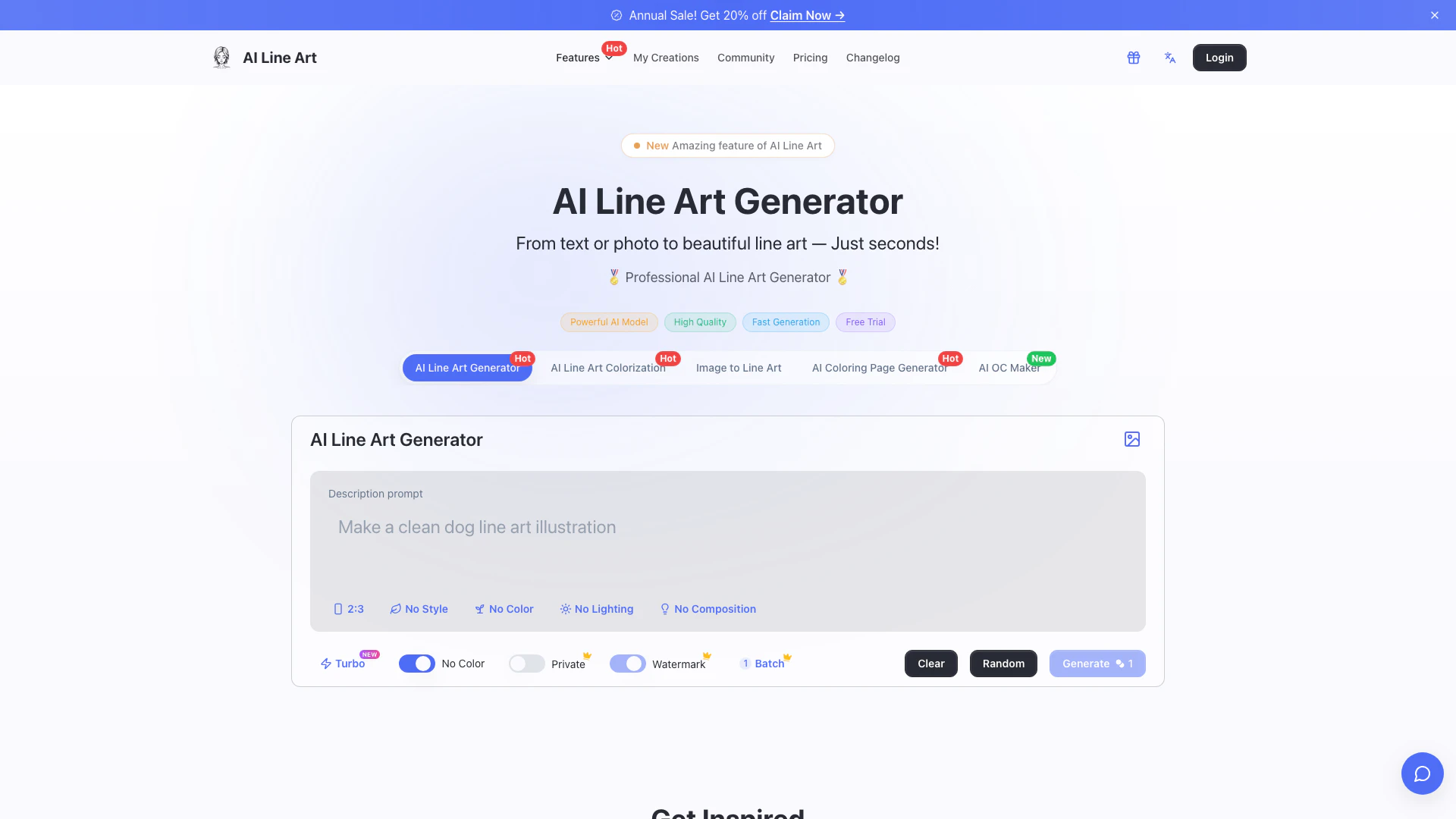 - One-Click Generation[4]: Create stunning line art illustrations with just a single click.