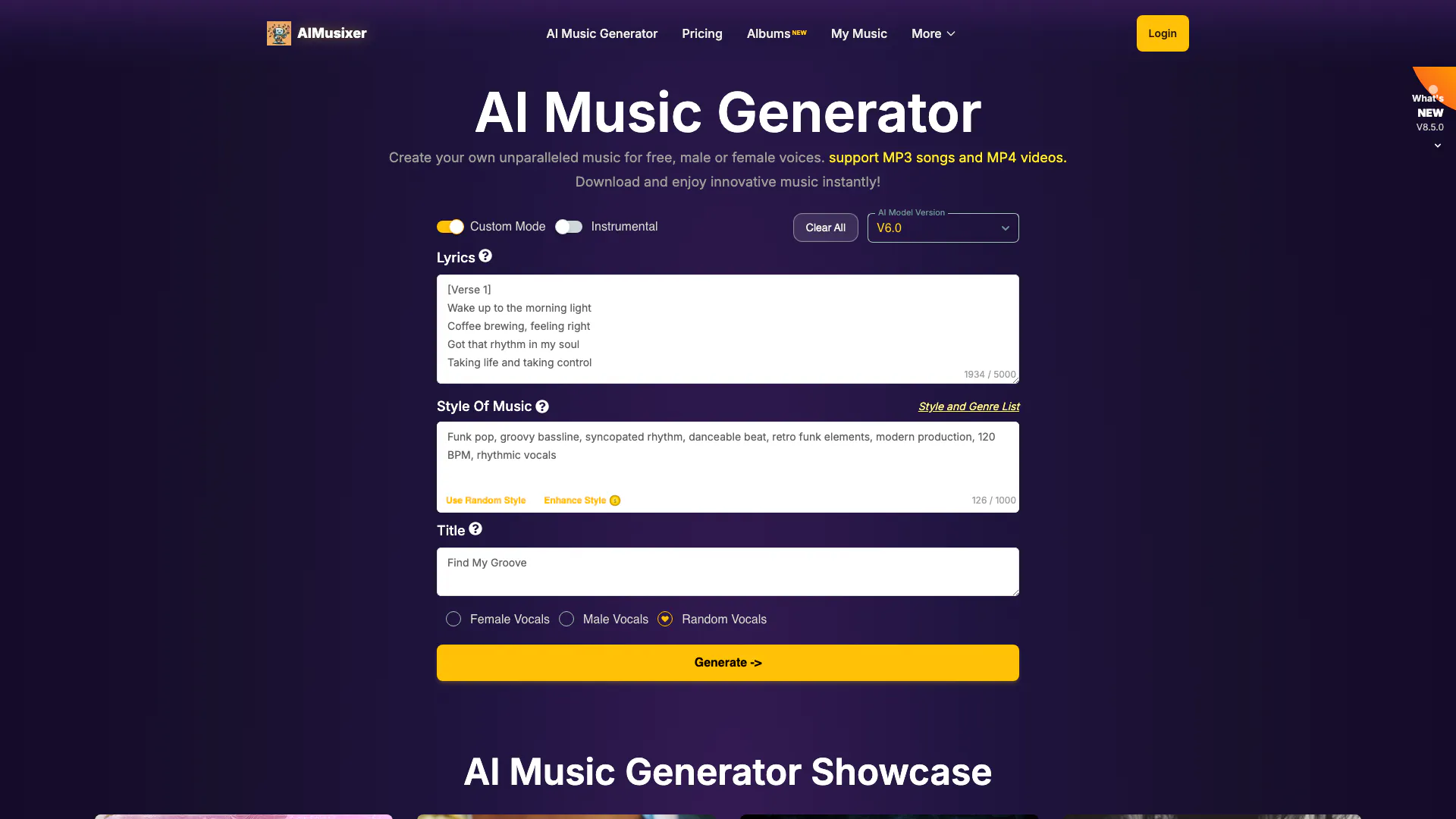 - Free Music Generation: AIMusixer allows users to generate music for free, making it accessible for everyone to create unique songs.