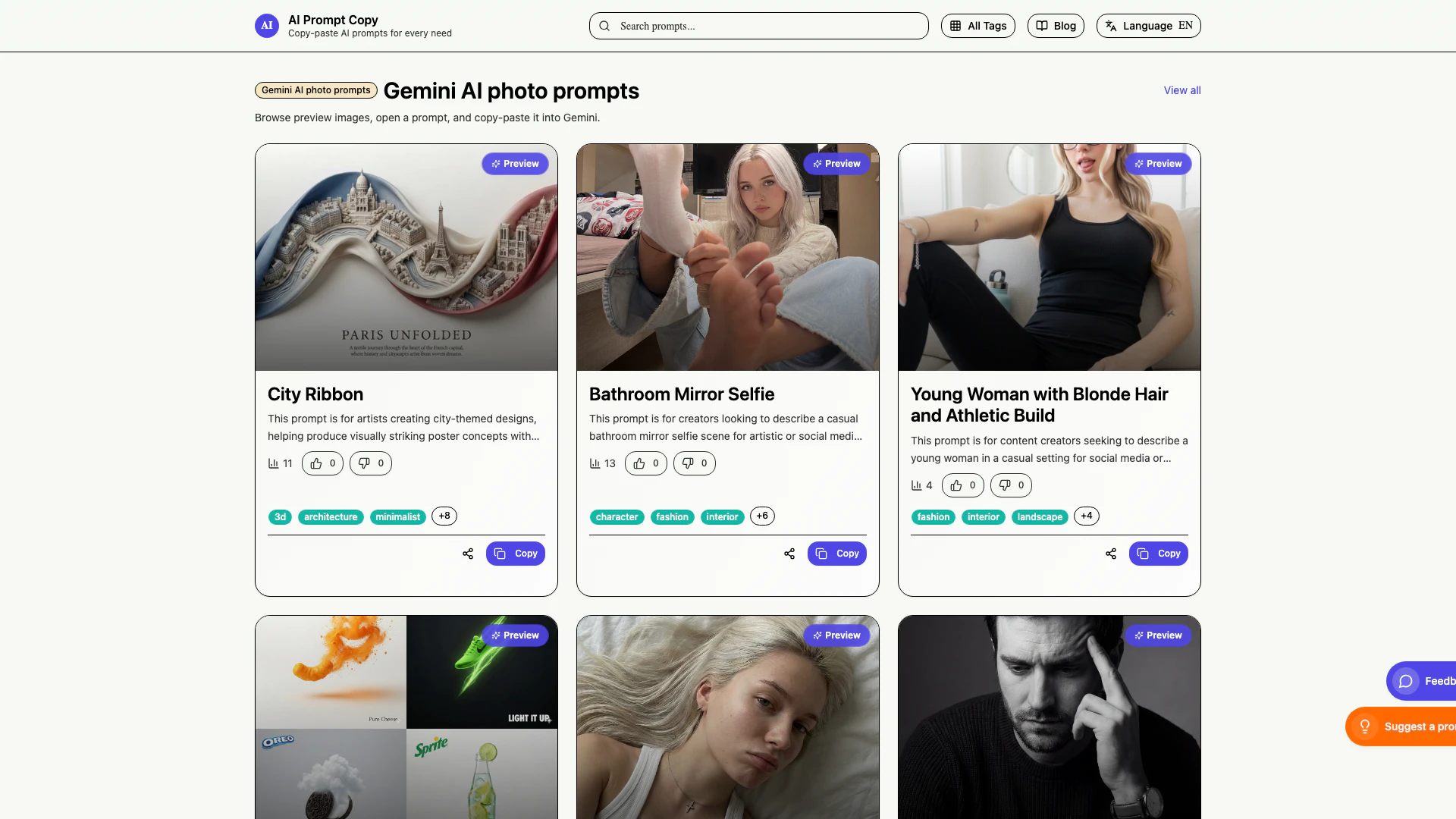 - User-Friendly Interface: The platform features a user-friendly interface that simplifies the process of browsing, selecting, and copying prompts, enhancing user experience.