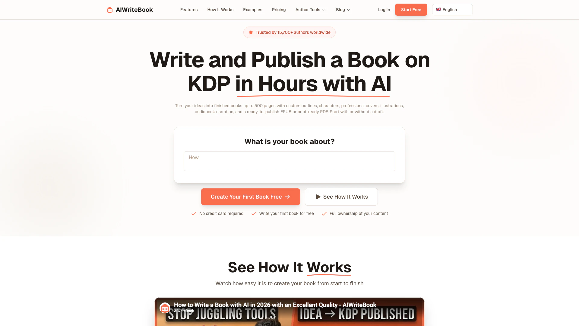 AIWriteBook is designed for a wide range of authors, including: - KDP Publishers: Those who have published multiple books and seek to streamline their writing and publishing processes. - Prolific Authors: Full-time writers needing to produce content quickly while maintaining their unique voice across numerous works. - First-Time Authors: Individuals looking to complete their first book with guided assistance through the writing process. - Self-Help and Spiritual Authors: Coaches and experts wanting to structure their knowledge into cohesive, engaging nonfiction books. - Children's Book Creators: Authors of children's literature who require both text and illustrations to work in harmony.
